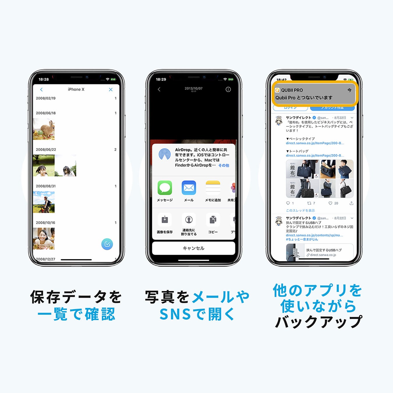 iOSアプリ「ファイルアプリ」との連携に対応し、iPhone内にあるファイルを「Qubii Pro」アプリに移動することができます。