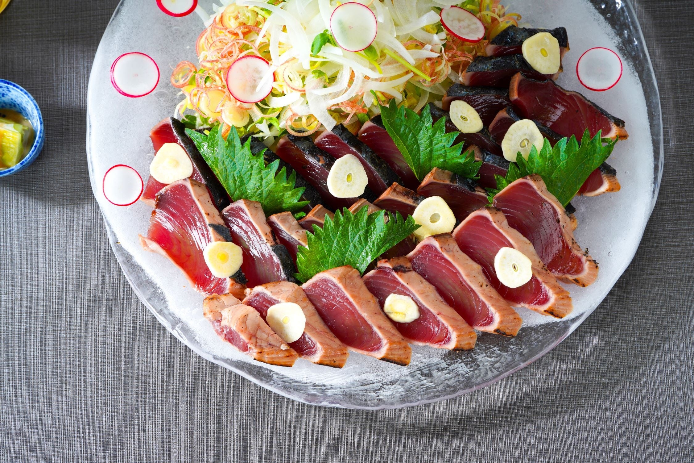 「カツオのたたき」「鮎の塩焼き」「豆サザエ旨煮」など、季節を感じる和の味覚もご用意。夏ならではの食材を取り入れたメニューは、お酒との相性も良く、ゆったりとした時間をお楽しみいただけます。