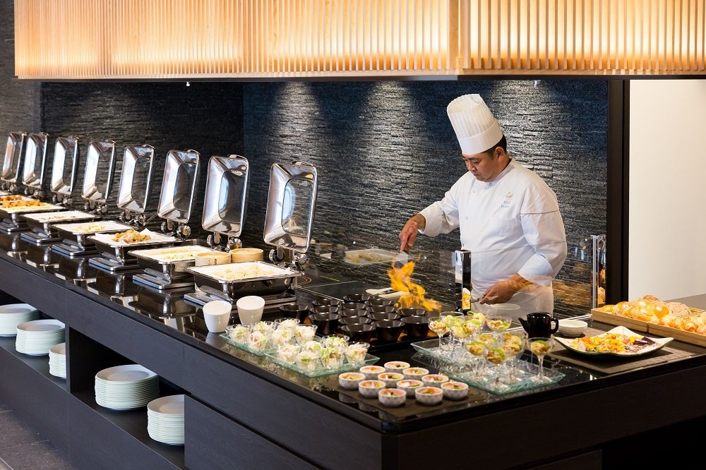 ライブキッチンで焼き上げる「サーロインステーキ」の食べ放題をはじめ、和・洋・中 約30種類以上の多彩な料理とともに、3種のビールやスパークリングワインなどの飲み放題をご用意。さらに、鰻や鮎などの夏の味覚や、ビールによく合うピリ辛メニューも取り入れ、暑い季節でもお楽しみいただける内容に仕上げました。5~7月と8~9月で一部メニュー内容を変更し、時期ごとに異なる味わいをお楽しみいただけます。暑さが続く季節でも、期間を通して飽きずにご利用いただける構成としています。ご友人同士や職場のお集まりはもちろん、お酒を飲まない方やご家族連れも、涼やかなホテル空間で夏の夜を快適にお過ごしいただけるビアブッフェです。