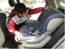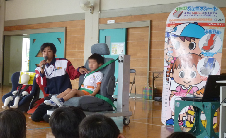 JAF福井支部では本点検会において、 車内で子どもを守る装置であるチャイルドシートの正しい使用と取付方法を呼びかけます。