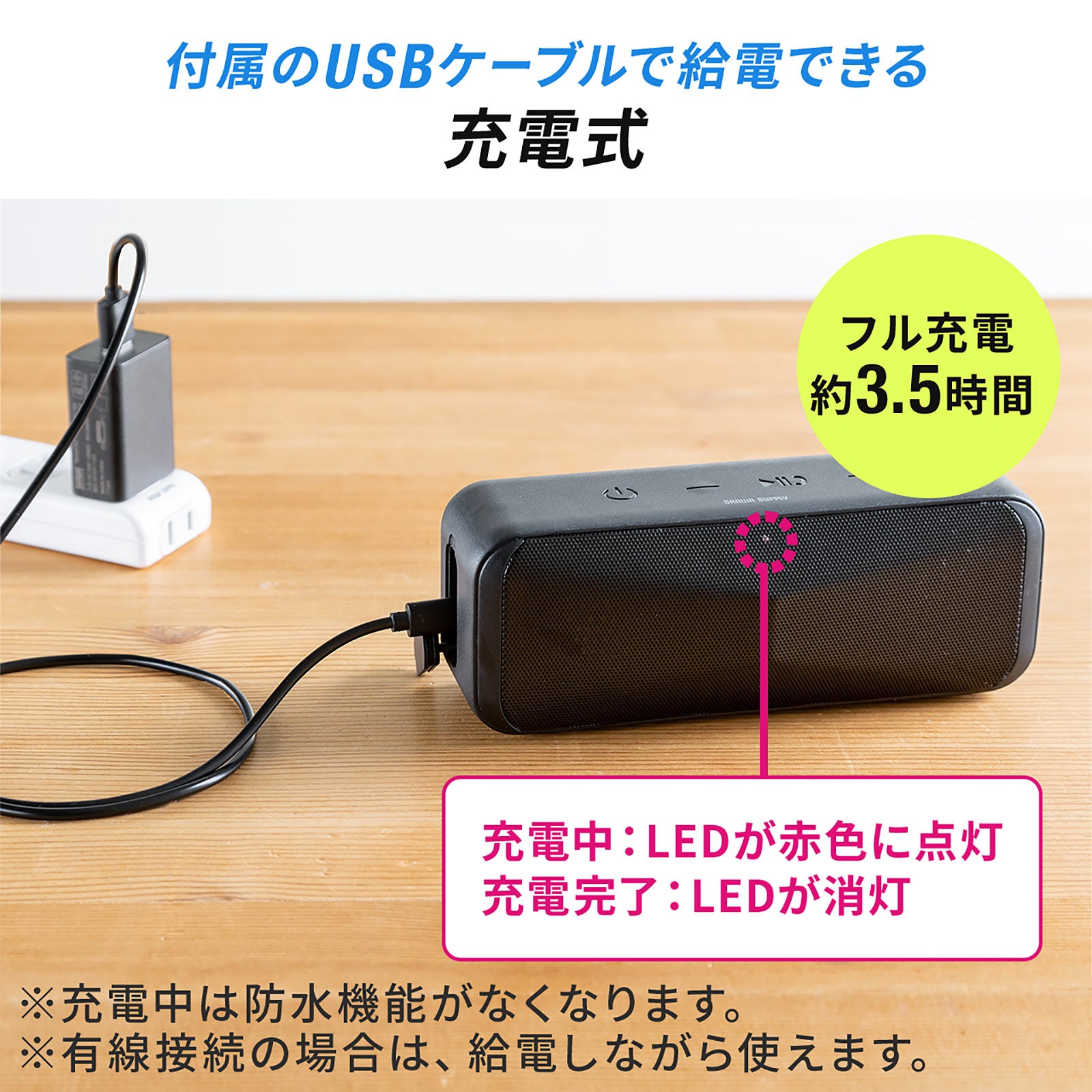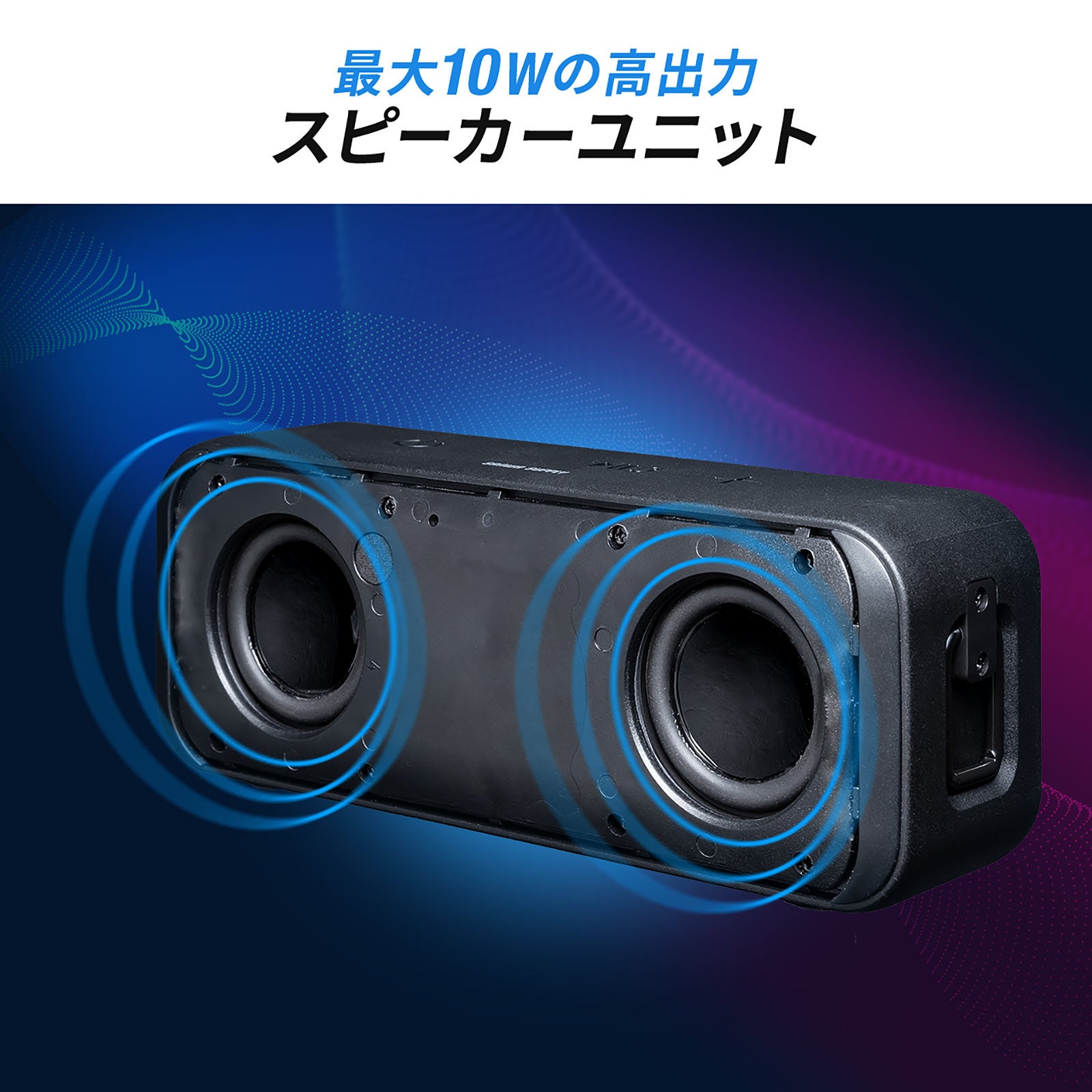 サンワサプライ株式会社(本社:岡山市北区田町1-10-1、 代表取締役社長 山田 和範)が運営している直販サイト『サンワダイレクト』では、お風呂やキッチンなど水周りでも音楽を楽しめる防水性能と、24時間再生が可能な大容量バッテリーを備えたBluetoothスピーカー「400-SP106」を発売しました。
