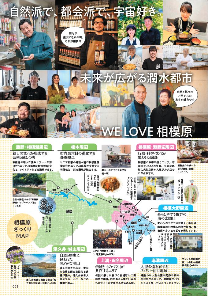 地元企業の賛同と協力をいただき、相模原市の全面協力のもと、まるごと一冊相模原の魅力を余すところなく詰め込んだMOOKとなりました。