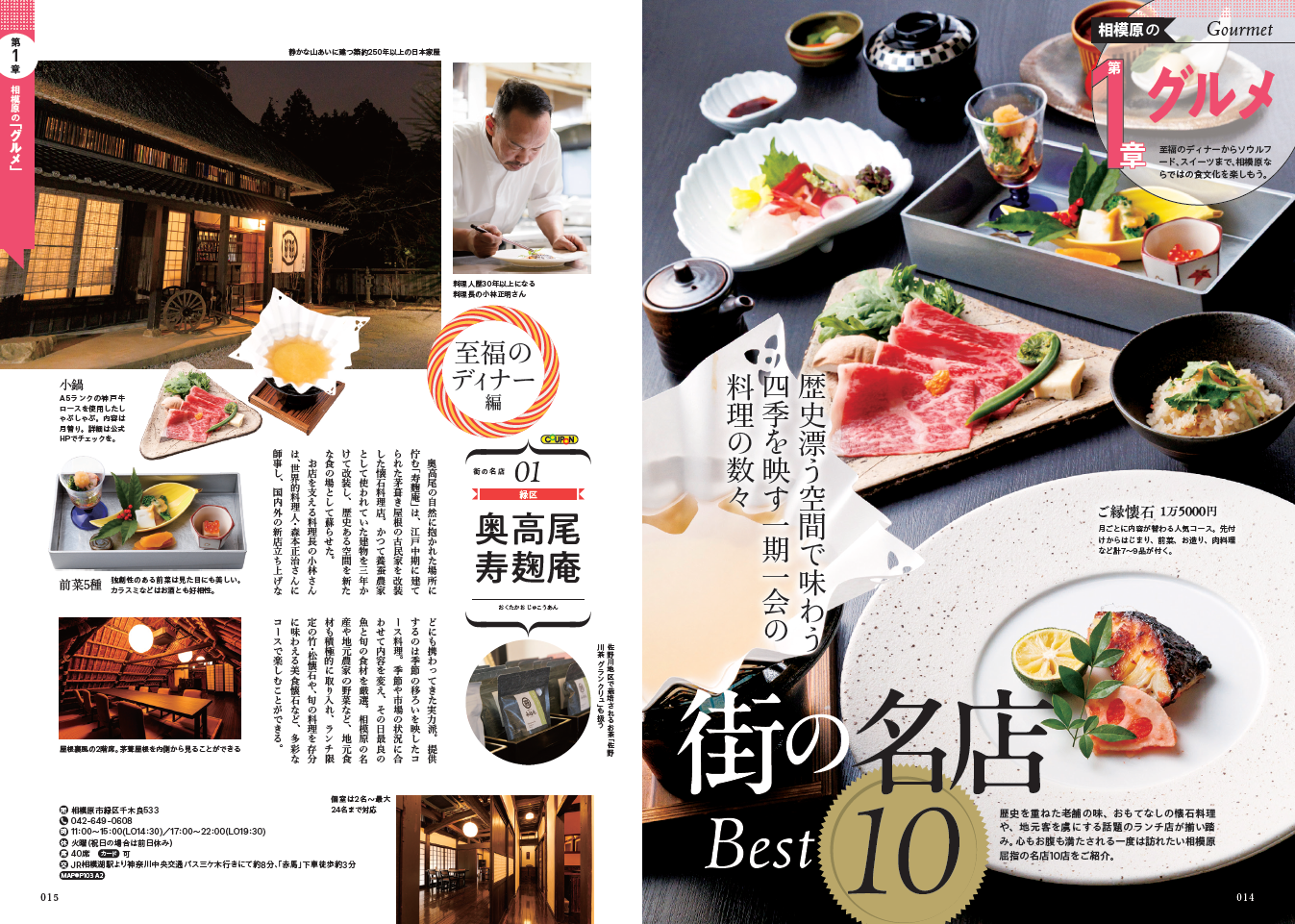 街の名店 Best10/相模原のソウルフード/個性派ラーメン/話題の絶品カレー/里山レストラン/非日常のカフェ/ご褒美スイーツ/おいしい酒場&ダイニング/愛されベーカリー/てっぱんみやげ