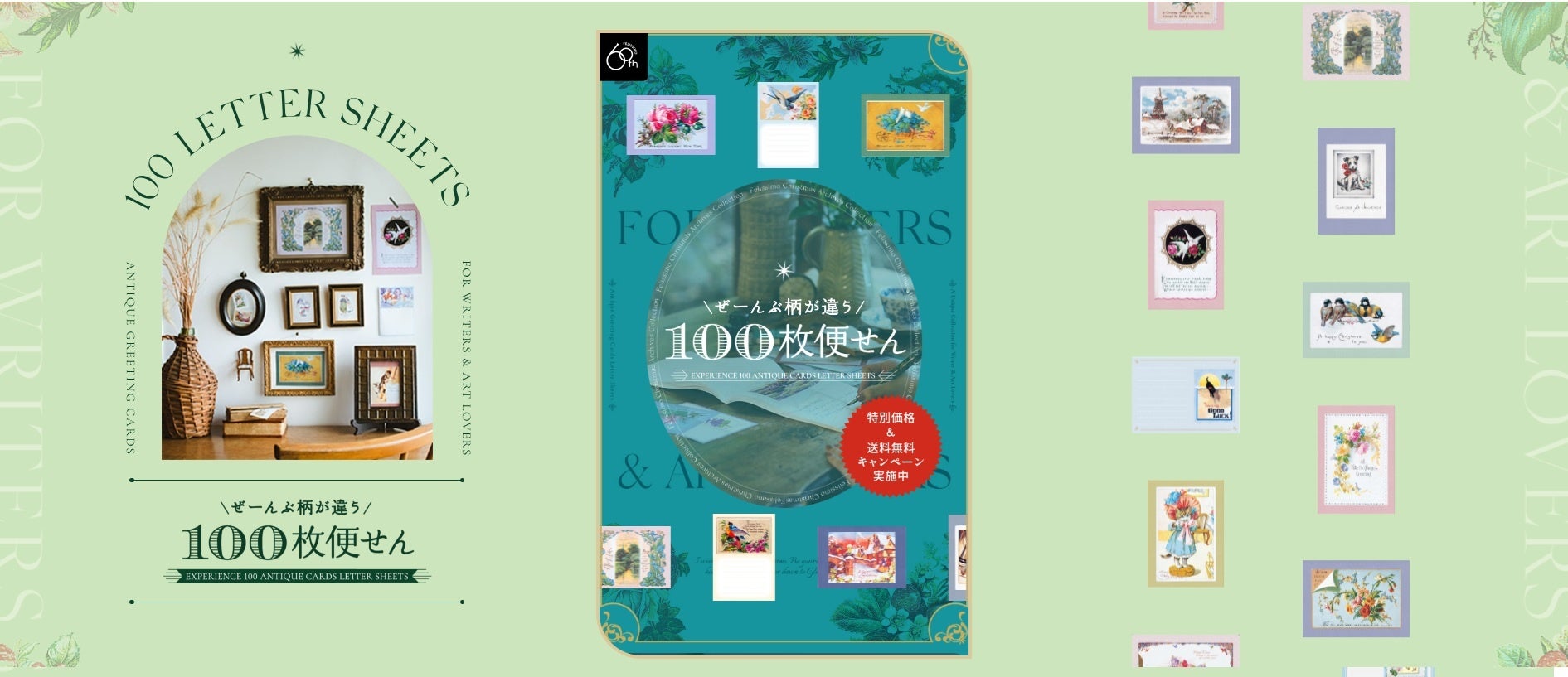 「全部柄の違う 100枚便せん」は愛されて38年。ヴィクトリア王朝時代の頃より集められたアンティークカードから選りすぐりの絵柄を厳選して特別に企画
