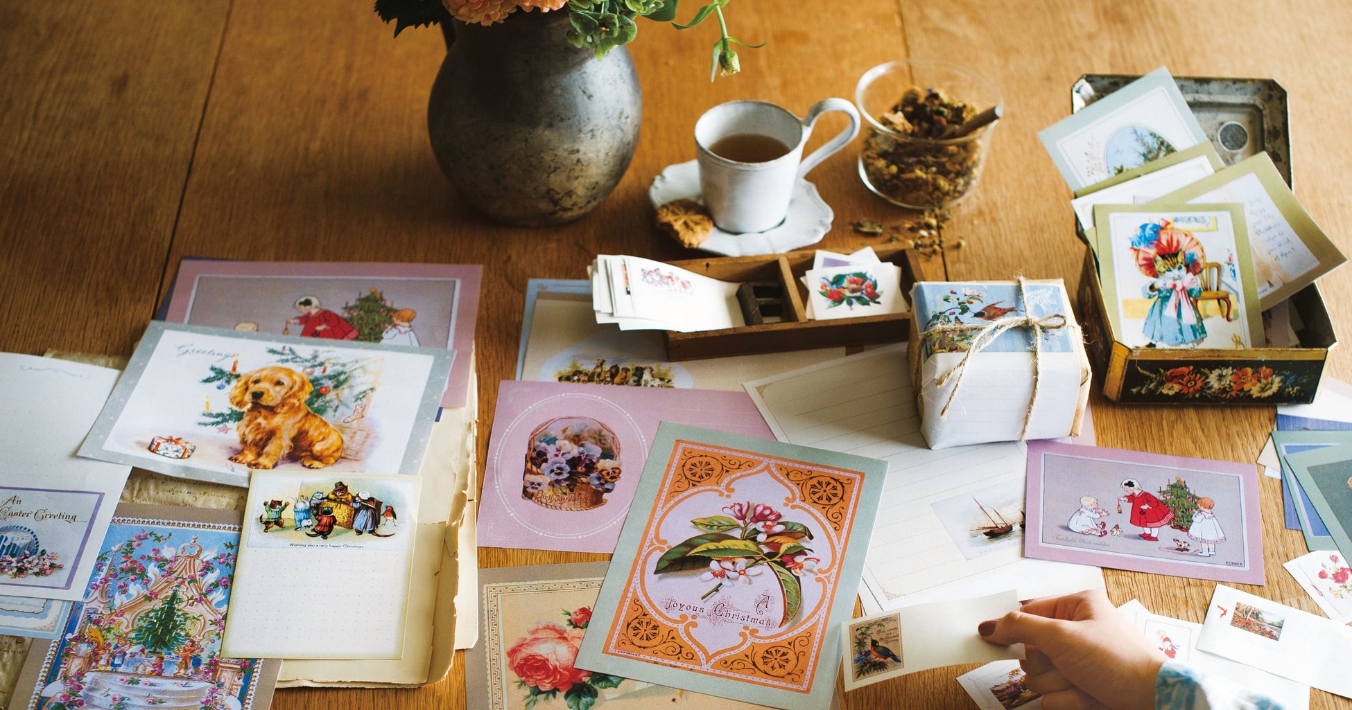 また、手紙として使うだけでなく、お気に入りの絵柄をトレイに敷いたり、そのまま壁に貼ったり、額に入れてインテリアとして飾ったりするのもおすすめです。本物のアンティークカードでは難しかった大胆な使い方を、便せんだからこそ楽しむことができます。
