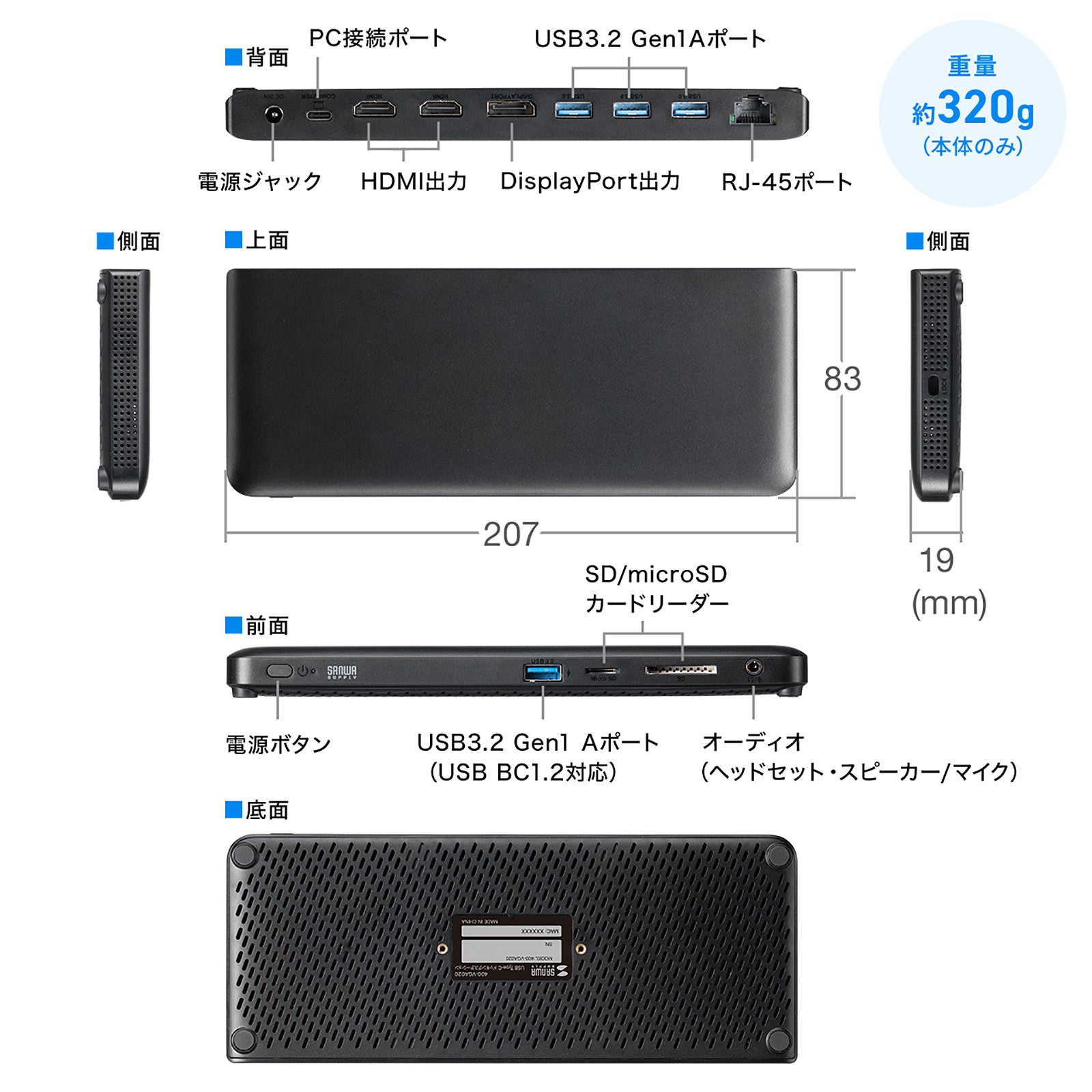 Type-Cケーブル1本で最大3画面出力できる薄型ドッキングステーションを発売