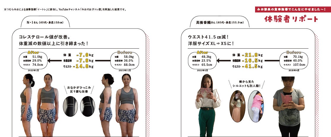 体験者も-21.8kg ウエスト41.5cm、やつれなく、キレイやせに大成功!
