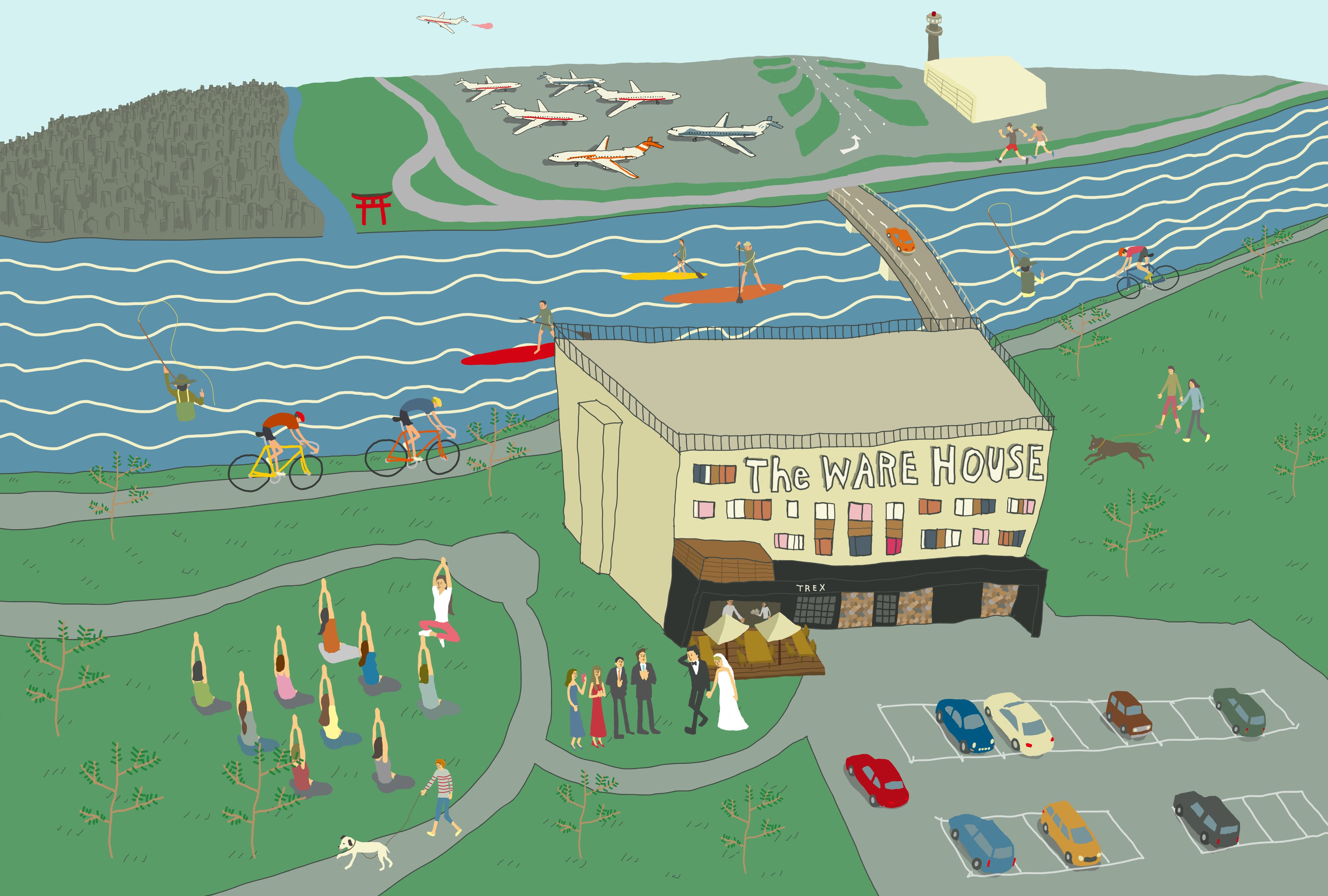 倉庫をモチーフにした建築空間を活かし、アナログレコードの⾳楽や国内外のアーティストによるアートなど、⽂化的刺激に満ちた空間を提供します。