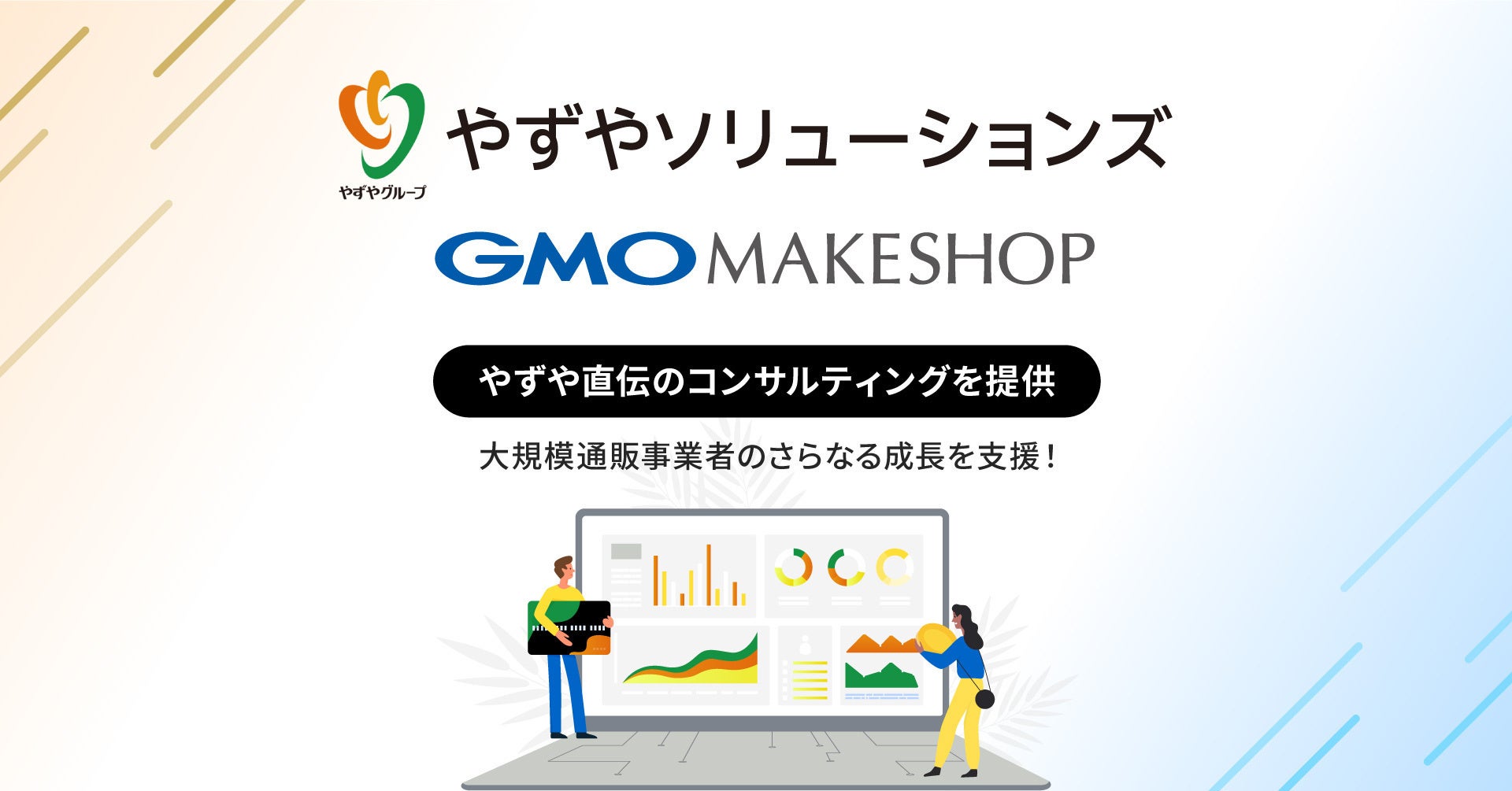 通販のリーディングカンパニー株式会社やずや(以下、やずや)のノウハウを結集し通販事業者支援を行うやずやソリューションズと、年間流通額3,000億円以上、11年連続ECサイト構築SaaS業界No.1(※1)の「makeshop byGMO」を展開するGMOメイクショップが協力し、通販事業の壁となる年商30億円以上を目指す大規模通販事業者の支援を強化するため、コンサルティングや、システム連携による成長支援策を提供してまいります。