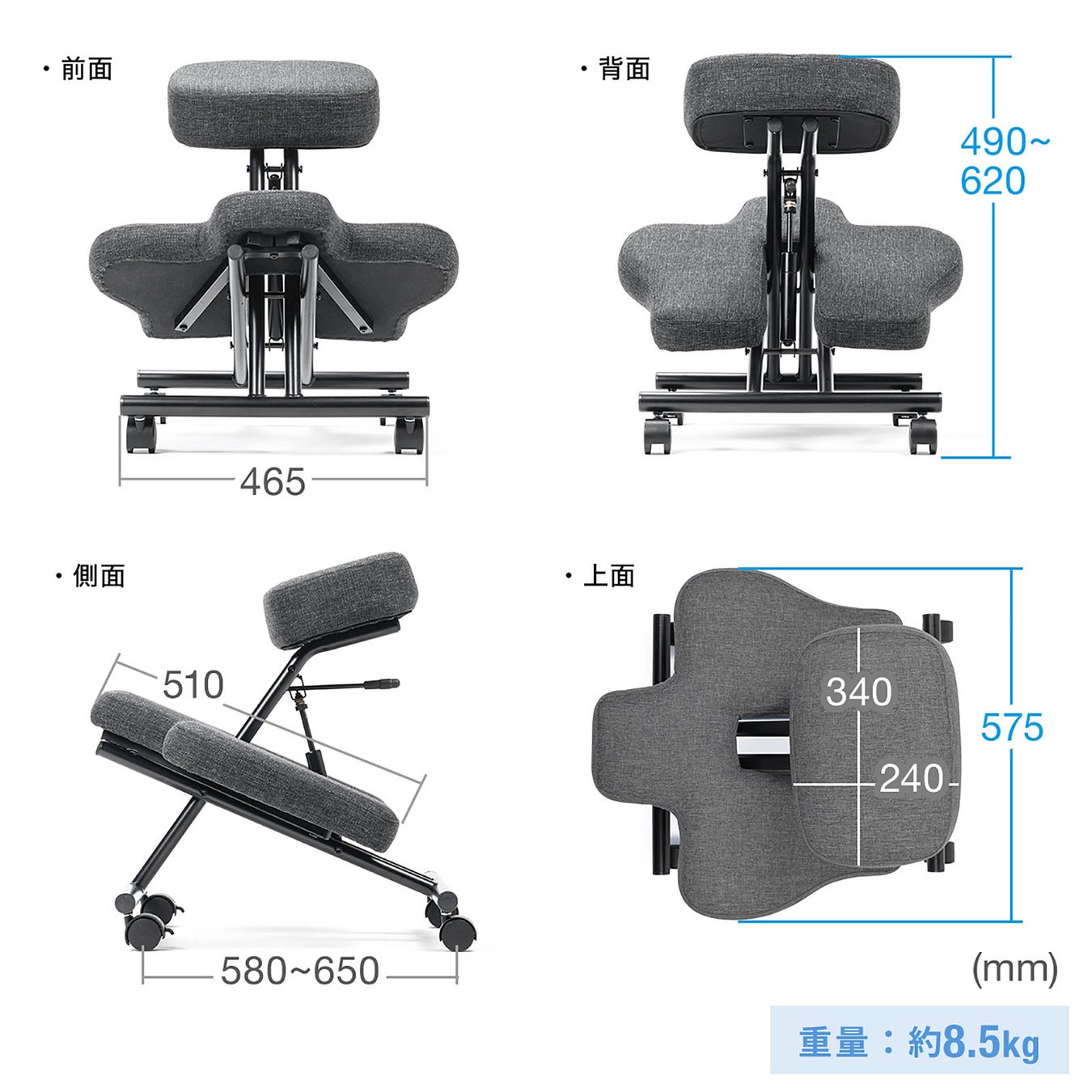 本製品のサイズ約W575×D580~650×H490~620mm、 重量は約8.5kgです。