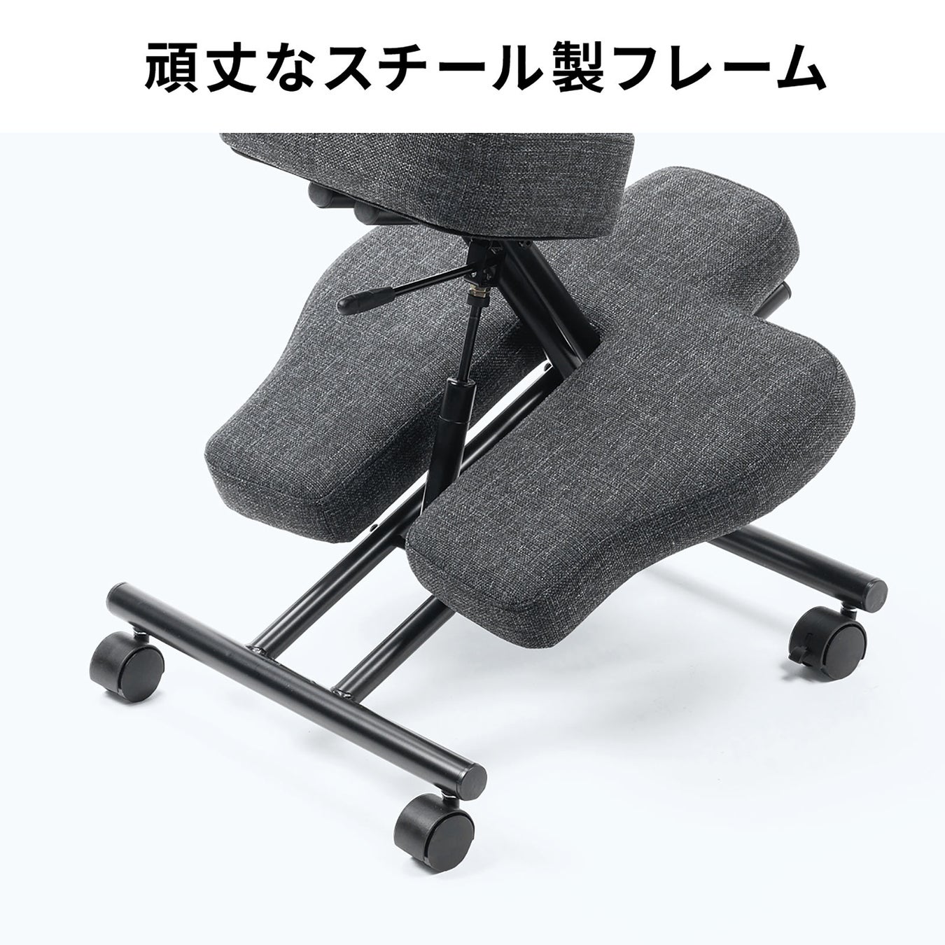 頑丈なスチール製フレームを採用しています。分厚い柔らかいクッションを採用しています。動かしやすいキャスター付きです。