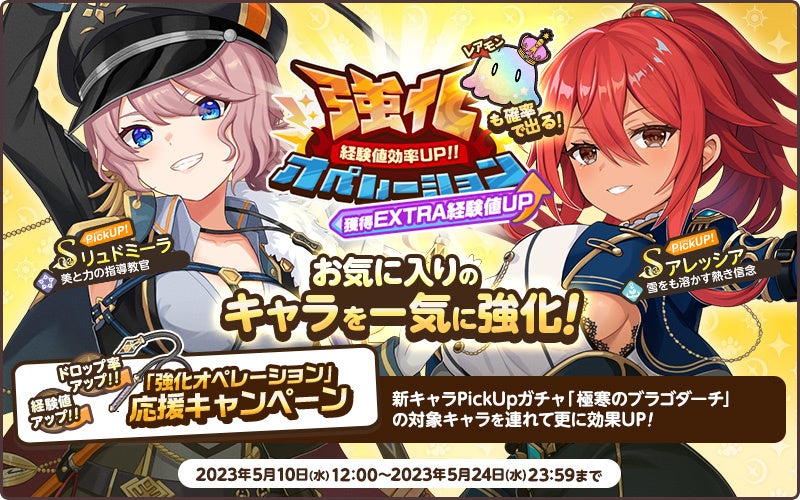 開催中のイベント「強化オペレーション」で編成すると、アイテムドロップ率とキャラクターの獲得経験値がUPします。