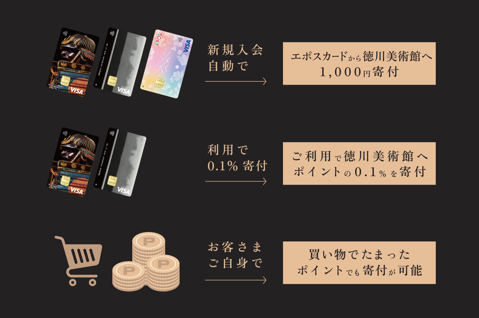 新規入会1件につき1,000円がエポスカードから徳川美術館へ寄付され、さらにカードのご利用で貯まったエポスポイントも寄付できる仕組みが整えられました。