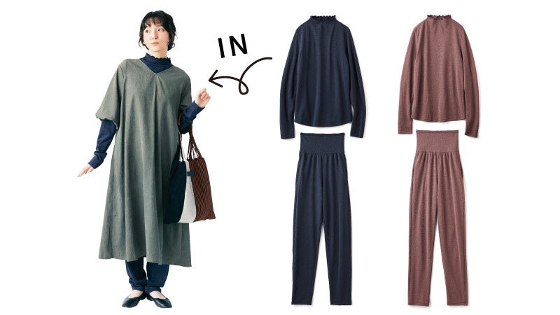 「毎日忙しくて、自分のケアは後回し」になりがちなすべての女性たちに、着て過ごすだけで疲労回復できる“ご自愛時間”を1秒でも長く提供したいというプランナーの思いから、本商品が誕生しました。パジャマやホームウェアユースが主流だったリカバリーウェアを、家でも外でも着用できるデザインとベーシックなカラーリングに落とし込むことで、重ね着のインナーなどで見せてもOKなデイリーファッションとして着用できます。また、からだを覆う面積を可能な限り広げるため、手もとや足の甲まで隠れる丈感にこだわりました。さらにはら巻き仕様のウエストデザインで、おなかまわりもすっぽりカバーします。自宅でのリラックスタイムを心地よく過ごしたい時はもちろん、お出かけ中、外気の冷たさが気になる秋冬に、おしゃれと両立しながらできる寒さ対策としてもぴったりです。忙しい生活の中でもシーンを選ばず、一日中疲れたからだに寄り添う一着です。