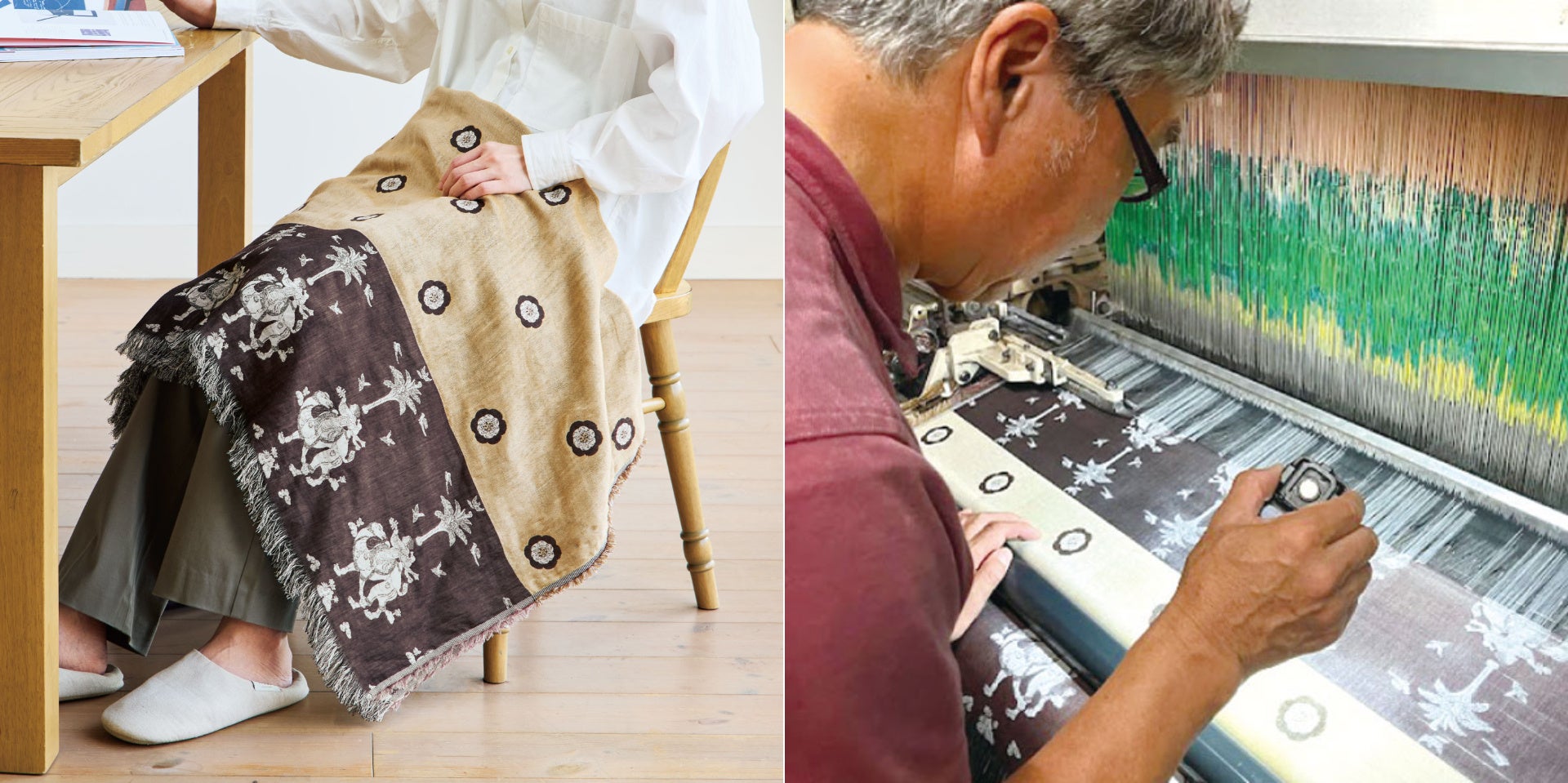 ひざかけとしても使える大判サイズです。兵庫県北播磨地区にて200年以上続く播州織の伝統を継承しつつ、絶えず研究を重ね、新たな魅力を生み出し続ける工房「織馬鹿」で生産しています。