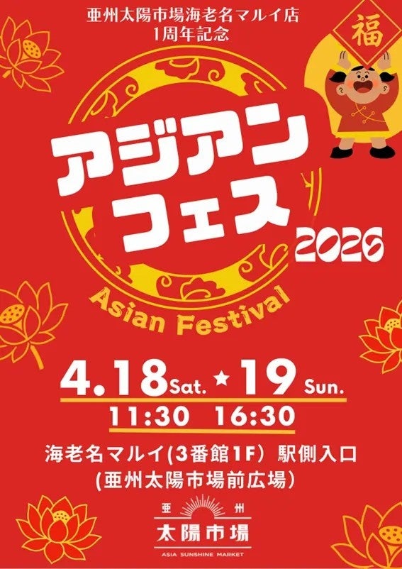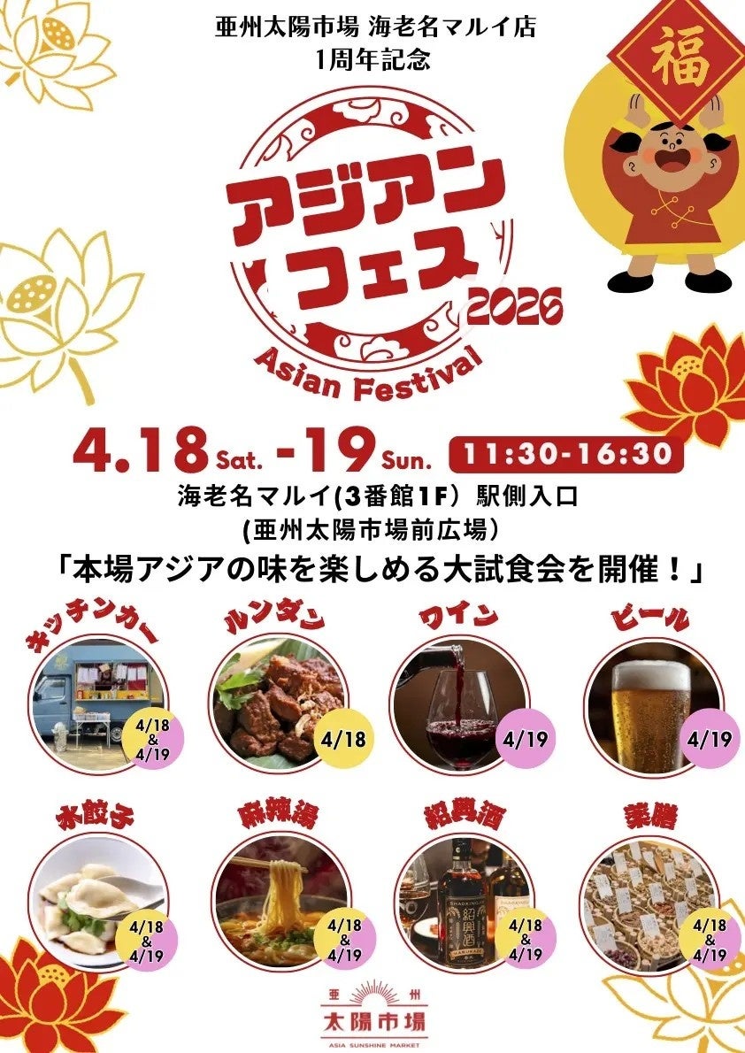海老名マルイ「亜州太陽市場」1周年記念!ガチアジアの食や文化にどっぷり浸かる『アジアンフェス 2026』開催!