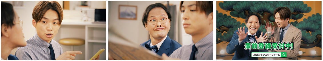 最新作「LINE:モンスターファーム」、本日より事前登録開始!アインシュタイン稲田さん&河井さんのコンビ愛が炸裂した新WEB CM公開