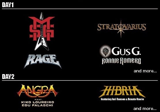 25日がANGRA(featuring KIKO LOUREIRO & EDU FALASCHI)、 HIBRIA(featuring Iuri Sanson & Renato Osorio)。