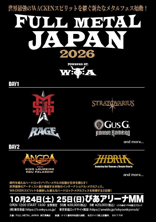 10月24日(土)・25(日) 、神奈川・ぴあアリーナMMにて、「FULL METAL JAPAN 2026 ~Powered by WACKEN~」を開催することが決定しました。