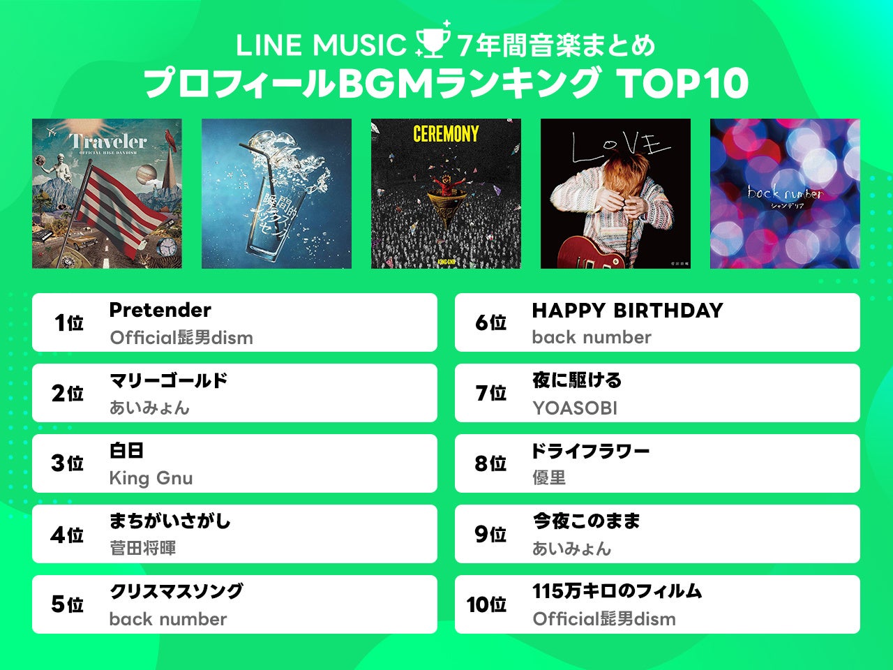 LINE MUSIC、配信実績1億曲突破!7年間で最もLINEのプロフィールBGMに設定された曲はOfficial髭男dism「Pretender」