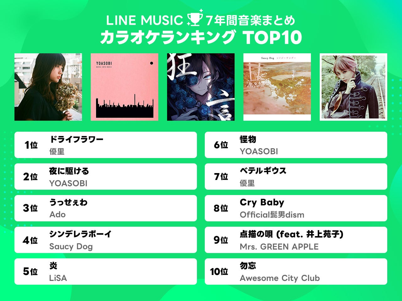- LINE MUSICで7年間のランキングを振り返ろう