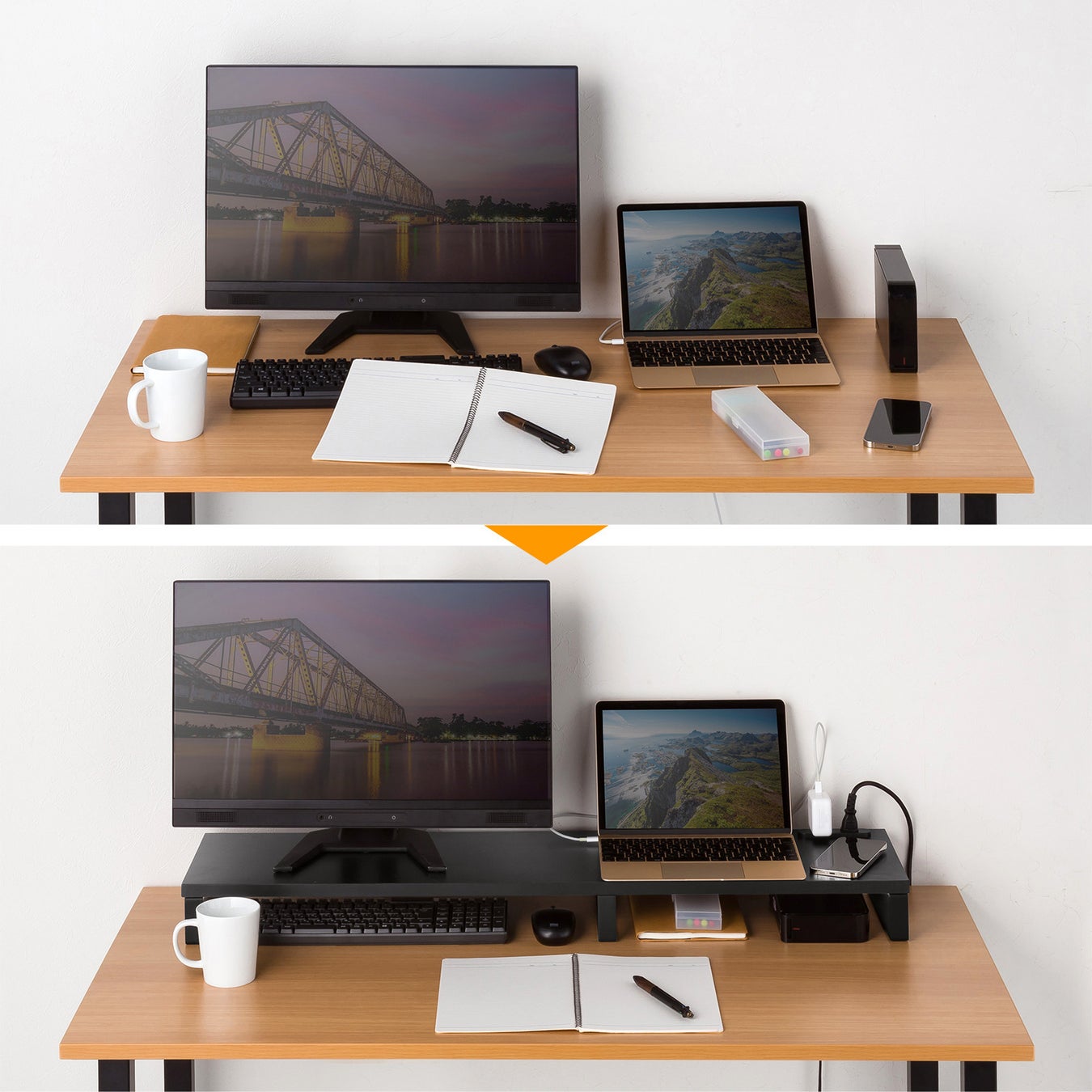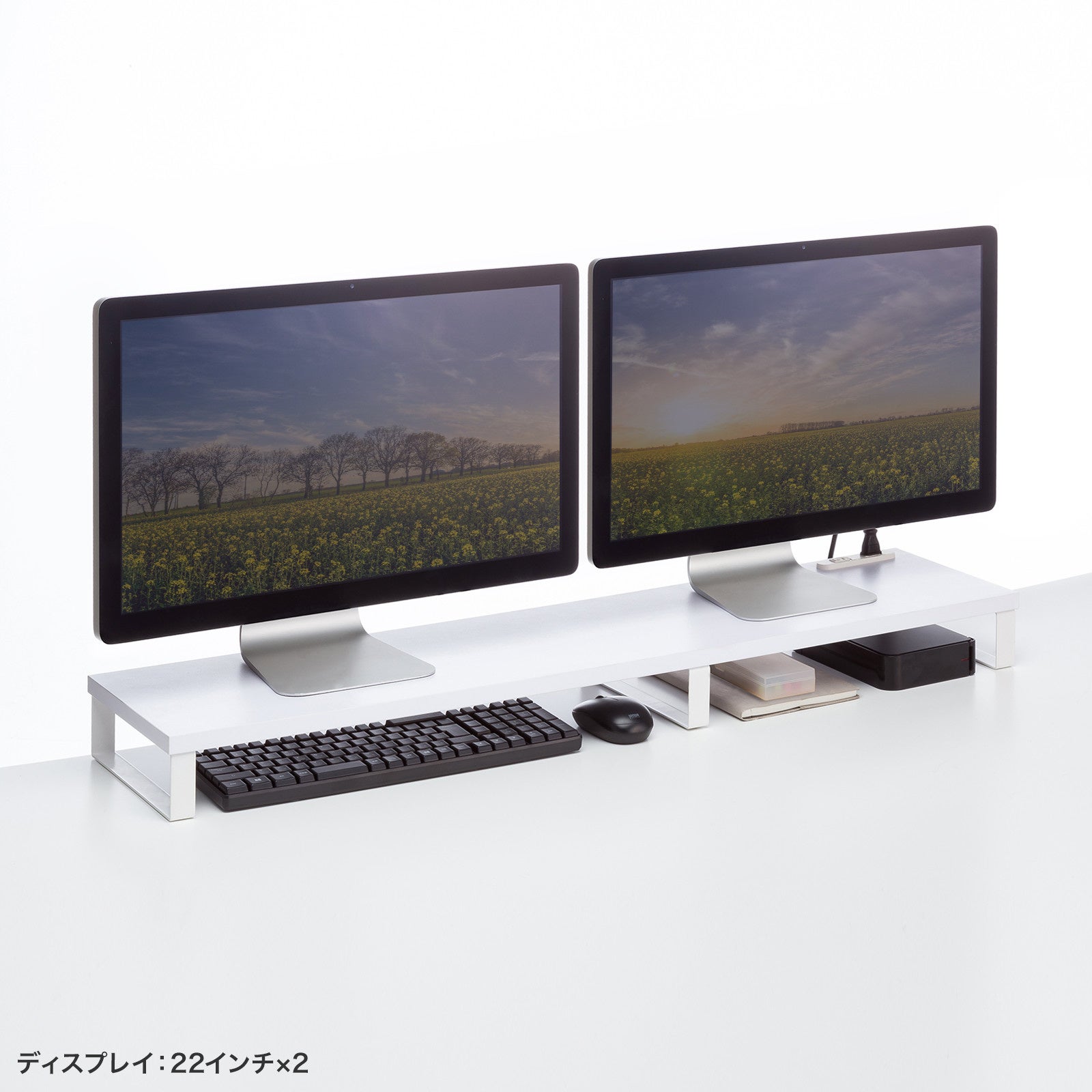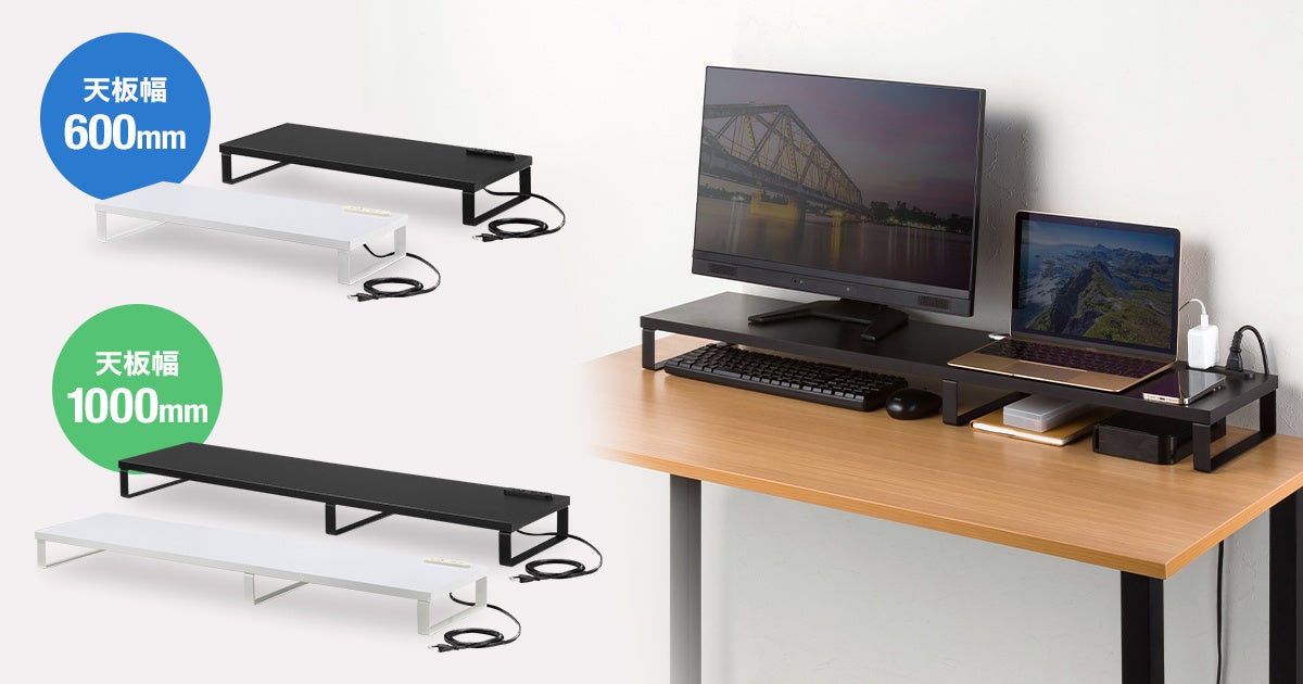 ディスプレイ下にスペースを作ってデスクを広く使える、2P・2個口コンセント付きの机上ラックを発売