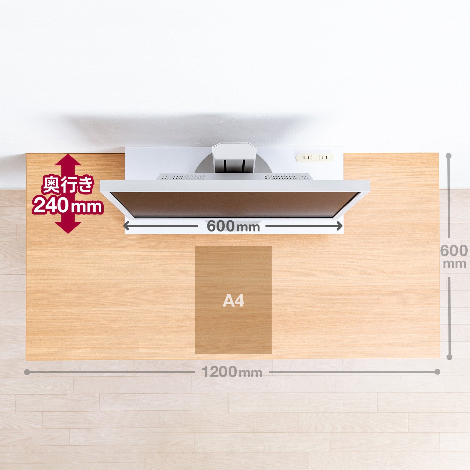 フルキーボードとマウスをモニター下に同時に収めることができ、デスク上の作業スペースを確保できます。