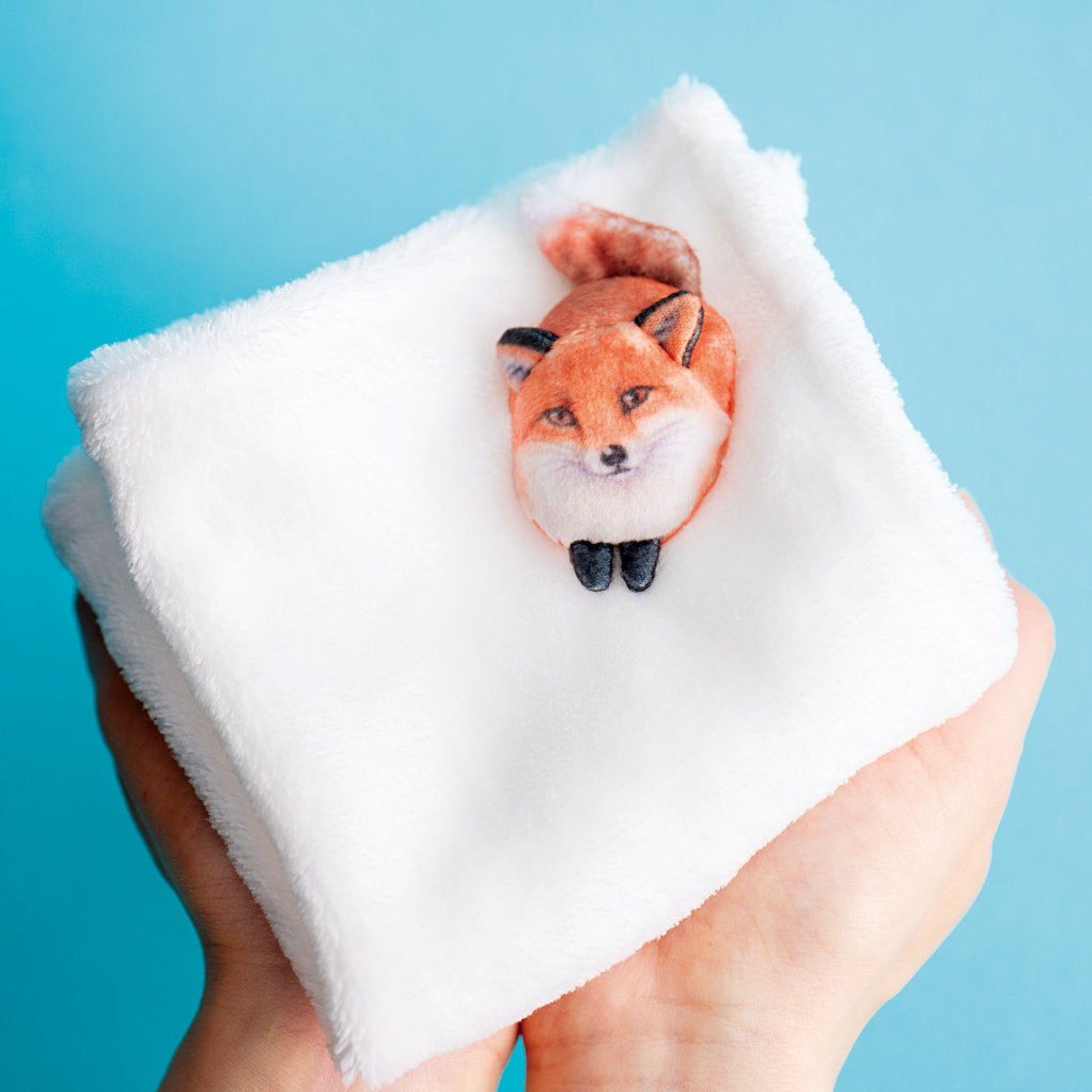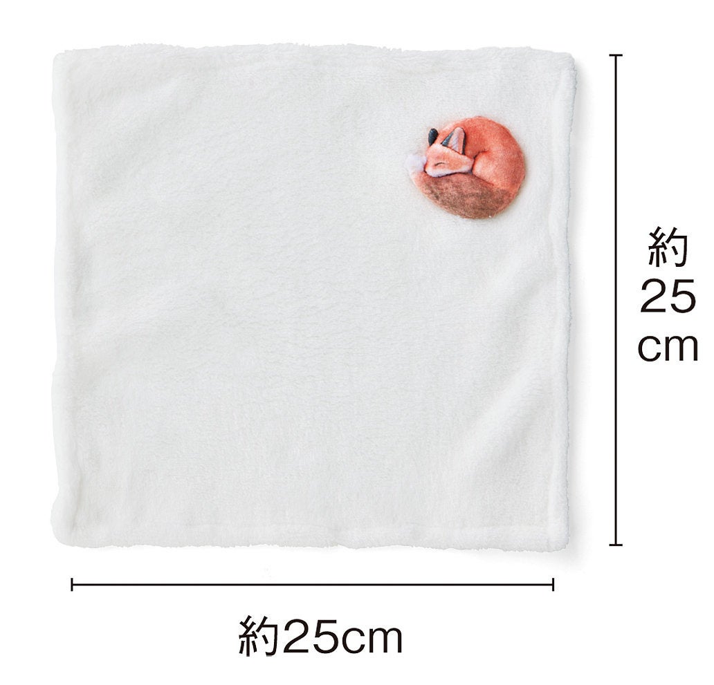 真っ白な雪をイメージしたふわふわのさわり心地のハンカチの上に、気ままに過ごすキツネたちがデザインされたハンカチです。大自然に暮らすキツネたちの日常を、そのまま切り取ったような一枚です。