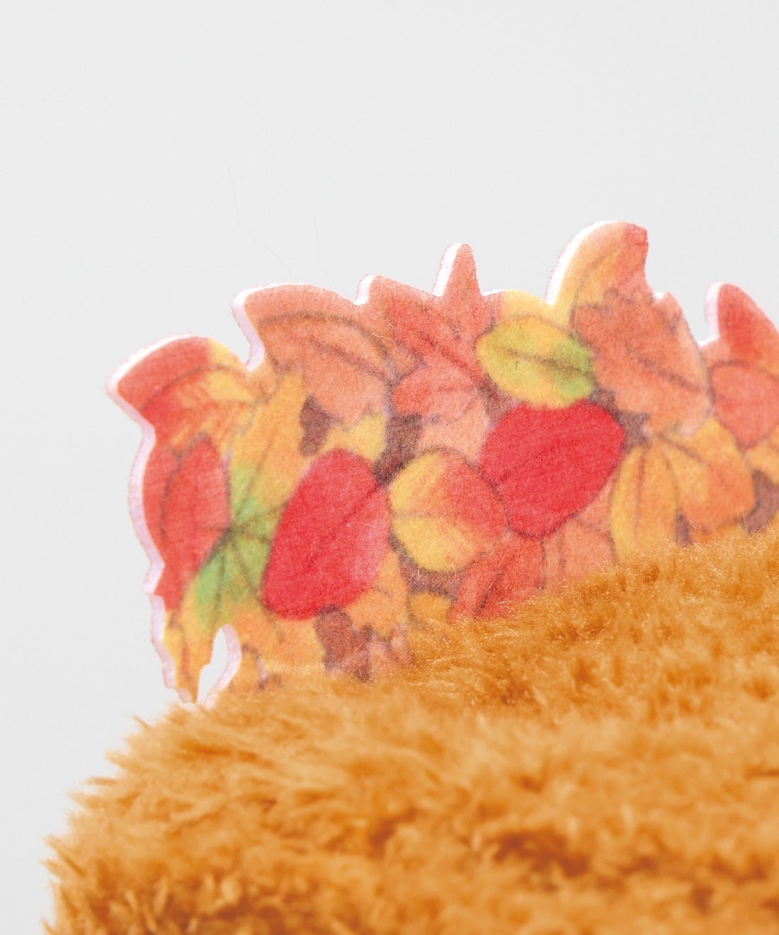 色とりどりの落ち葉はフェルトにプリント。立体的に見えるように、ティッシュカバーの背面にあしらっています。