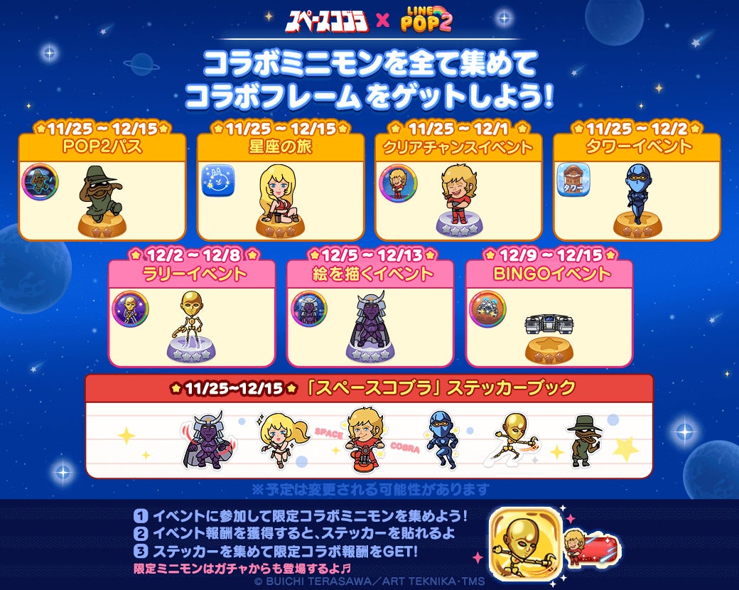 - 「LINE POP2」×『スペースコブラ』コラボ記念!豪華報酬がもらえる各種イベントを開催!