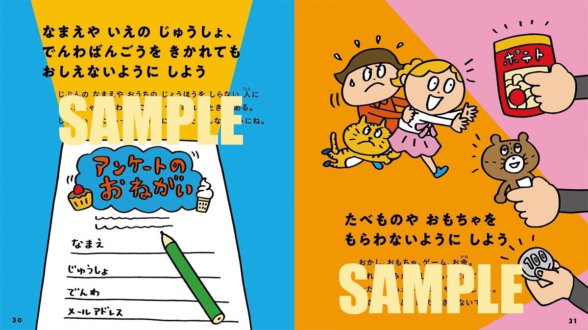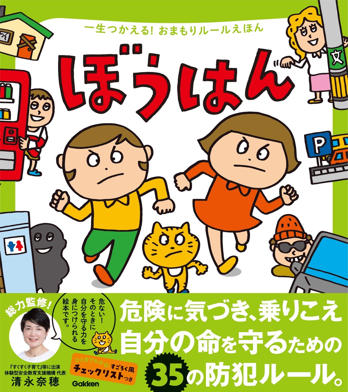 NPO法人体験型安全教育支援機構の代表理事で、『ひるまえほっと』『すくすく子育て』などにも出演の清永奈穂氏。本書では、独自の体験型安全教室を各地で行っている清永氏監修のもと、イラストを交えて「防犯」のルールをわかりやすくまとめています。あやしい人、あぶない人などのイラストも、多様性を意識した、子どもがこわがりすぎない絵柄で、最後まで読める内容にしています。イラストを担当するのはサイゼリヤキッズメニュー間違い探しでおなじみのthe rocket gold star氏。