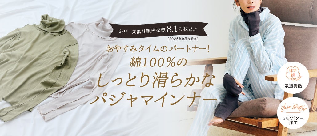 【寒くて眠れない夜に】シリーズ累計8万枚突破!冬の快眠アイテム「パジャマインナー」がさらに進化。「ほか綿」100%&シアバター加工素材で温かさ・吸湿性・肌ざわりがパワーアップ!