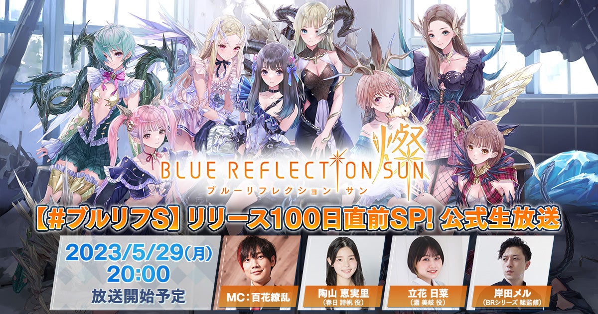 5/29(月)20:00より、番組MCに百花繚乱さん、春日詩帆役の陶山恵実里さん、瀟美岐(しゃお めいちー)役の立花日菜さん、そしてシリーズ総監修・キャラクターデザインを担当されている岸田メルさんをゲストにお迎えし、『BLUE REFLECTION SUN/燦』の最新情報をお届けします。