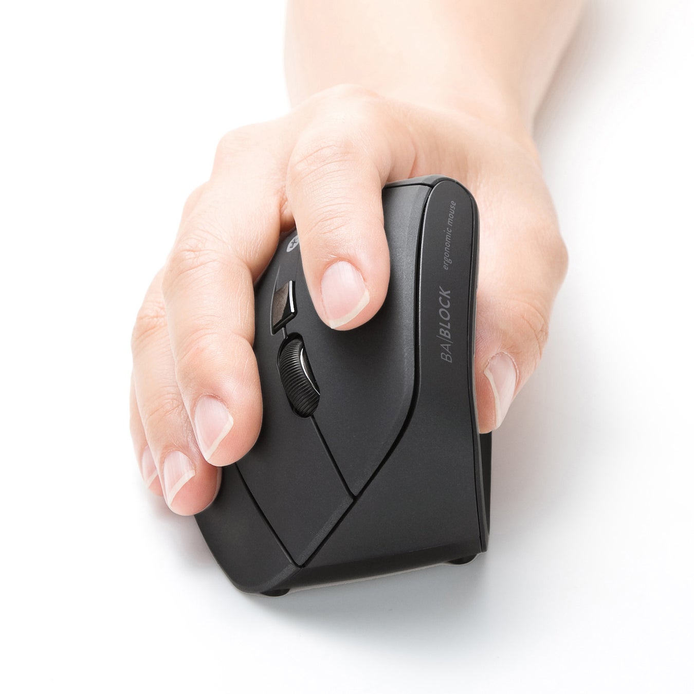 「MA-ERGBTK11」「MA-ERGWK10」「MA-ERGK9」は、手首への負担が少ないエルゴノミクスデザインのマウスです。横から軽く手を添えて使う新設計で、手首のひねりを軽減します。