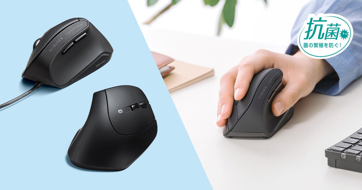 抗菌、静音仕様、手首の負担を軽減できるエルゴノミクスマウス3種を発売