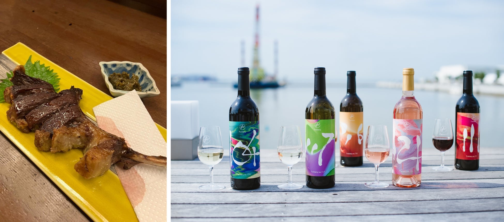 昼食では旅館料亭「大和」でフェリシモが醸造するワインとともに牡丹肉のスペアリブや地元の季節の食材を使った会席料理(8品)を堪能。