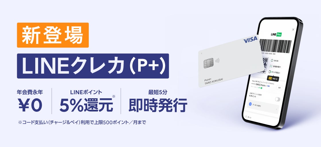 LINE Pay株式会社(本社:東京都品川区、代表取締役社長CEO:前田 貴司、以下LINE Pay)と三井住友カード株式会社(本社:東京都江東区、代表取締役社長:大西 幸彦、以下:三井住友カード)は、2022年11月29日(火)より、「Visa LINE Payクレジットカード(以下:LINEクレカ)」の新しい商品ラインナップとして「Visa LINE Payクレジットカード(P+)」(P+の呼称:ポイントプラス、以下:LINEクレカ(P+))の提供を開始いたします。