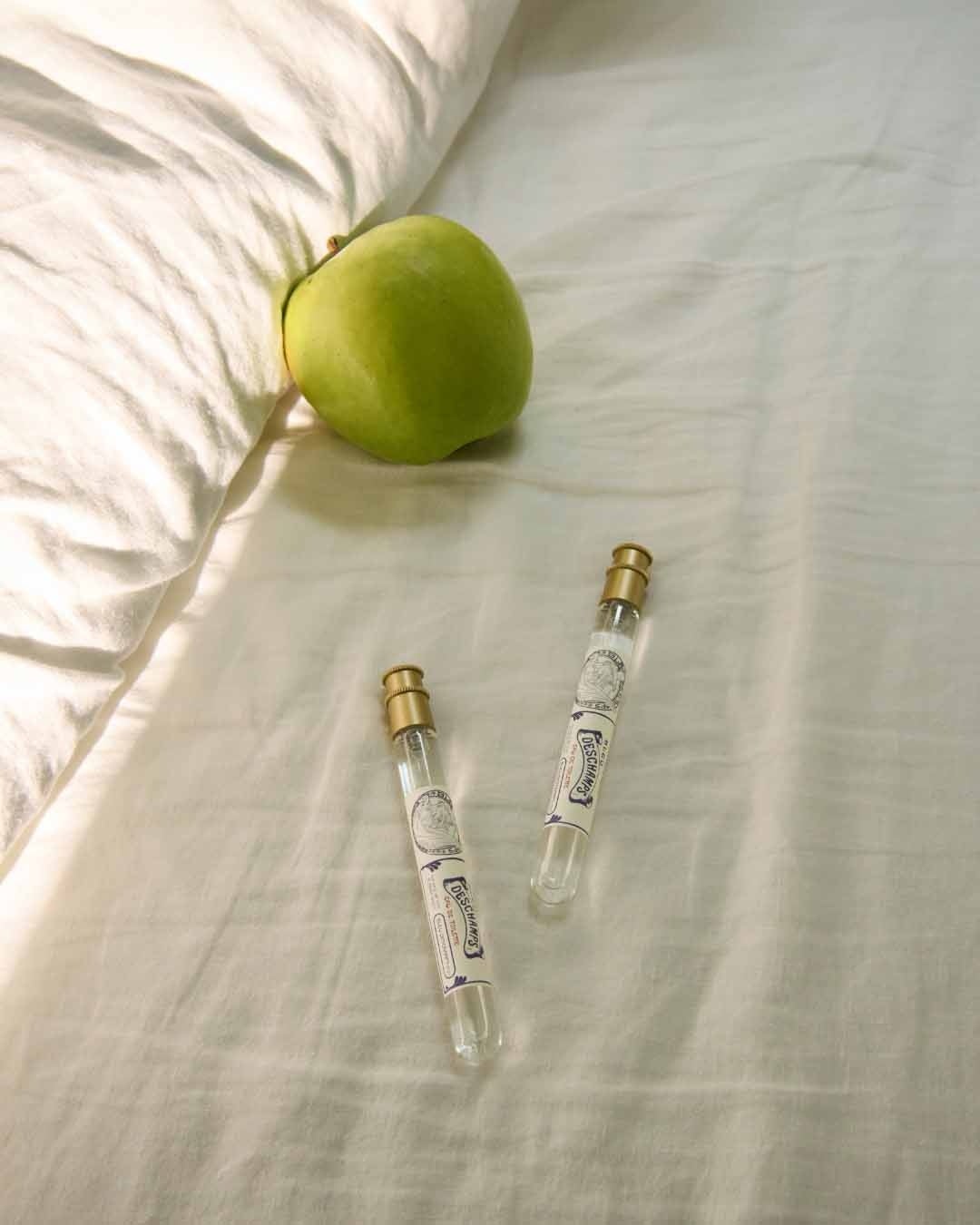 太陽の下でそよのくリネンのように軽やかに透け感のあるオーガンジーを使用し、ブル・デシャンプのアートを精密な刺繍で表現しました。13mlのフレグランスがすっぽりと入り、リップなどの必需品を収納するのに丁度良いサイズ感となっています。