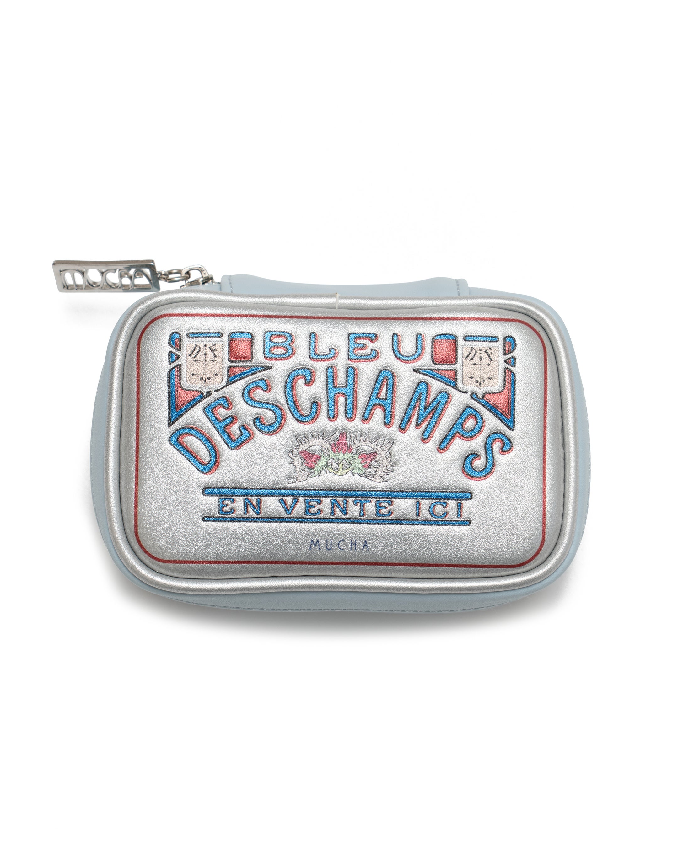 ミュシャが手掛けた洗濯洗剤の広告「ブル・デシャンプ」からインスパイアを受けたポーチ。