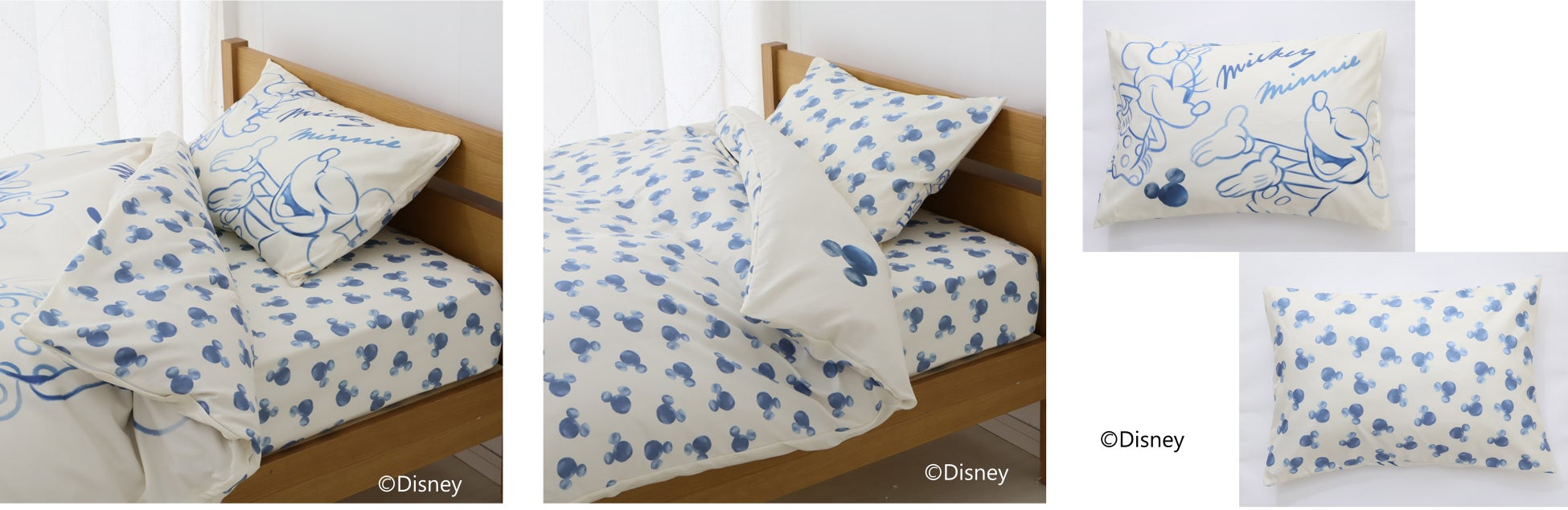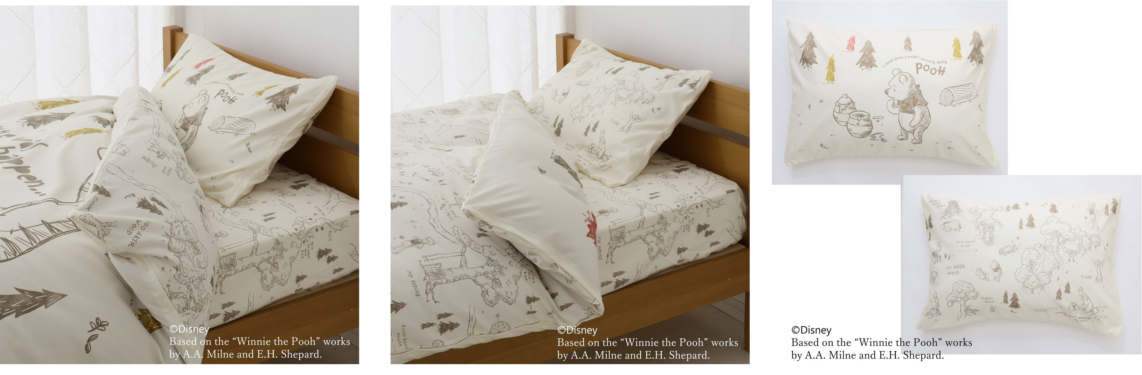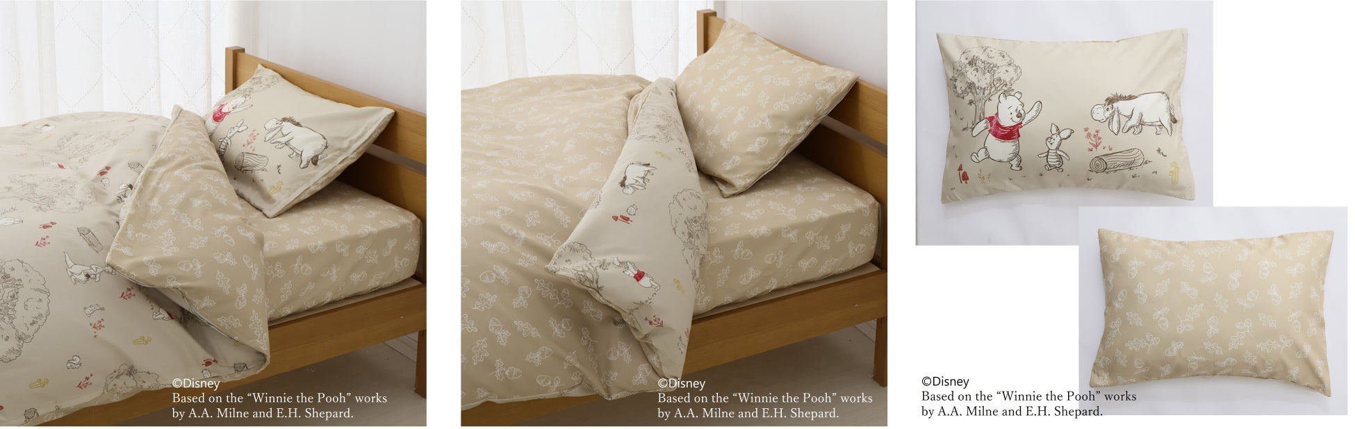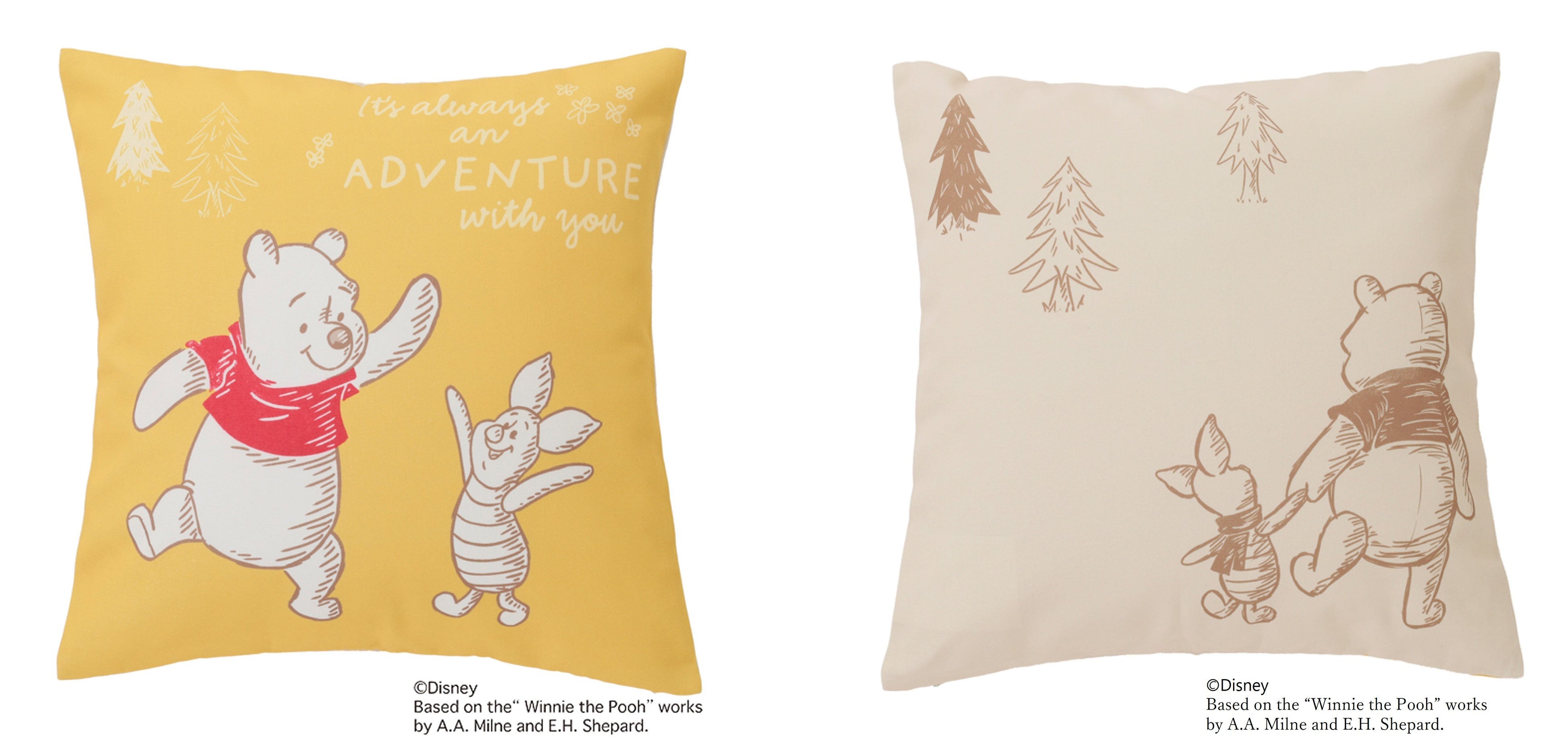 ミッキーマウスやミニーマウス、くまのプーさんのデザインの厚地カーテンやレースカーテン、クッションカバーが登場