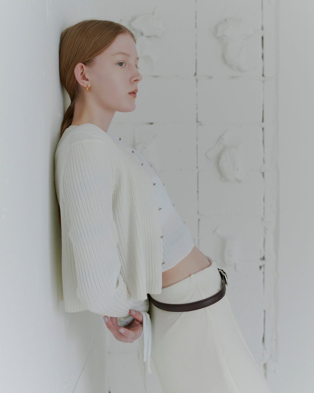作品から着想を得た色味をMIESROHE人気のシアーストライプニットCDに。