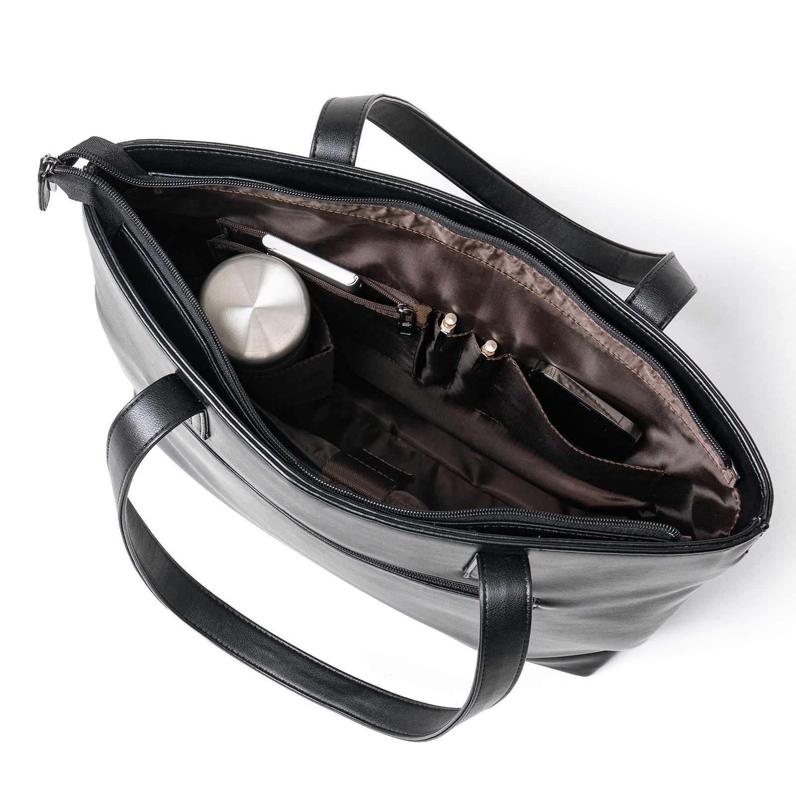 小物ポケット、ペンポケット、13.3型までのノートパソコンが入るパソコン用ポケットが付いています。