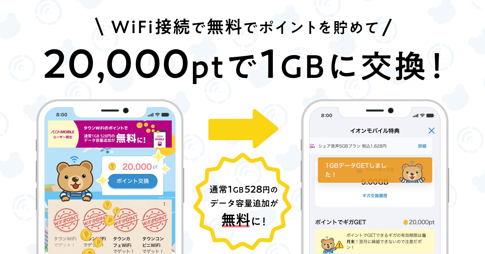 「タウンWiFi byGMO」利用で貯まるポイントで「イオンモバイル」高速データ通信容量の追加が可能に!【GMOタウンWiFi】