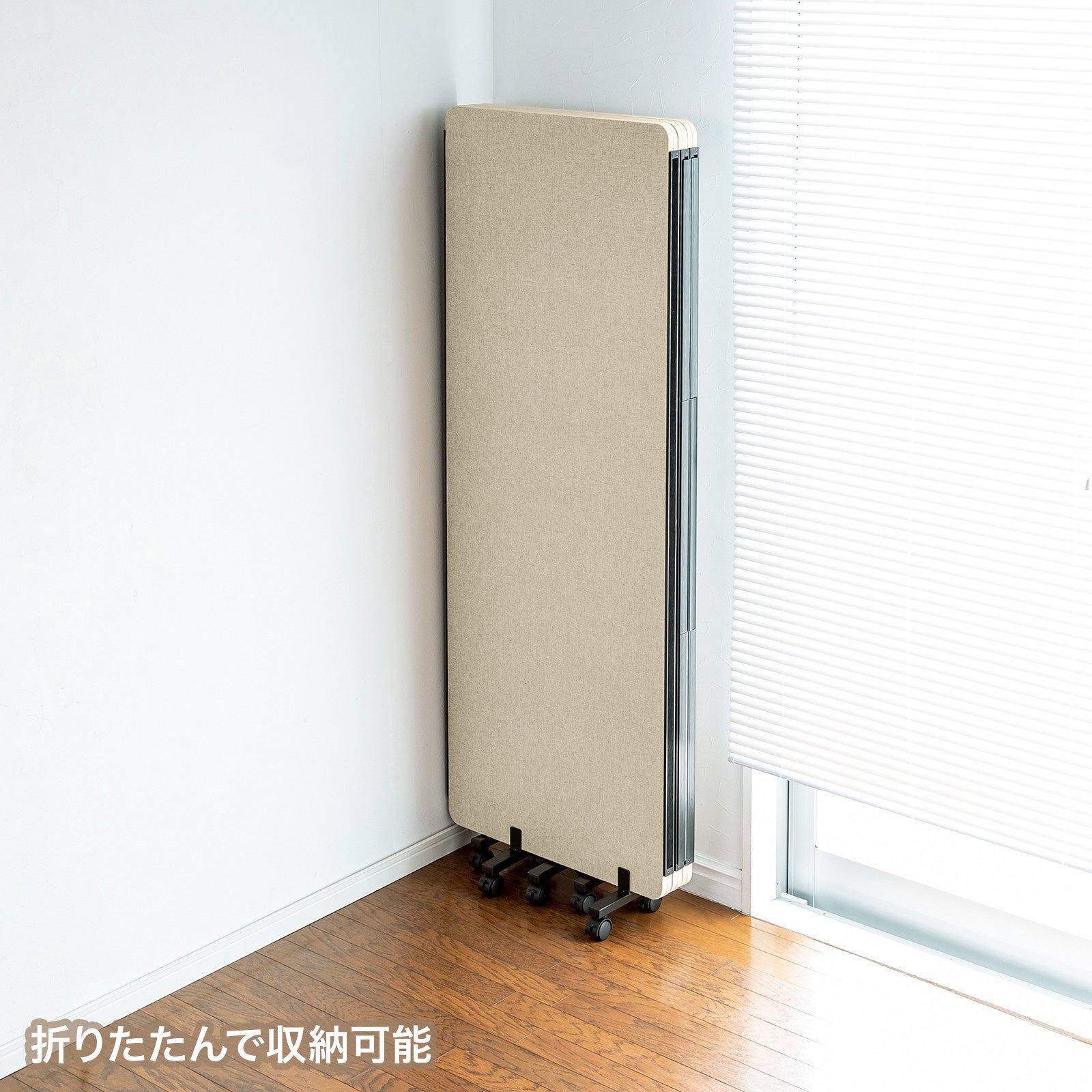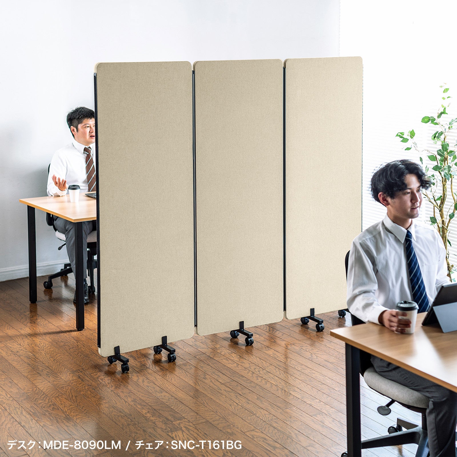 吸音効果で雑音を軽減、キャスター付きで収納・移動もできる3連パーティションを発売