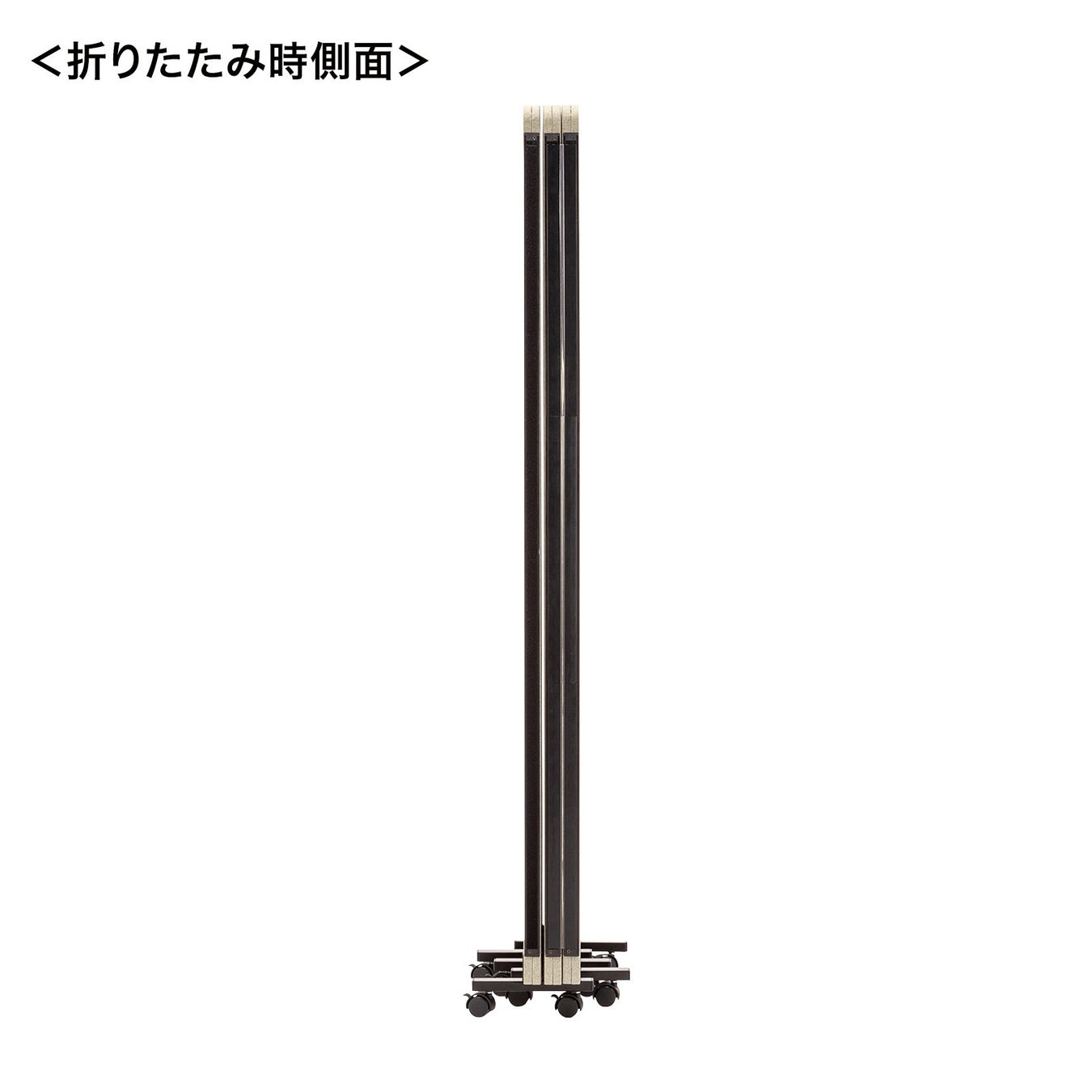 使わない時は折りたたんで収納できます。キャスター付きなので、収納・移動が容易に行えます。キャスターの車輪直径は40mmです。