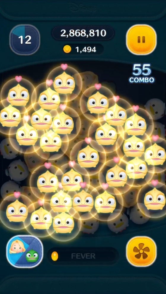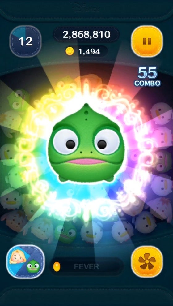 ラプンツェル+パスカルのスキル:特別なボムはラプンツェルのスキルで消すと高得点が狙えるよ!