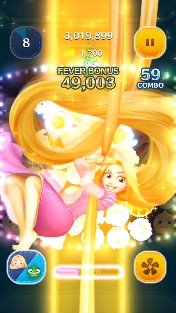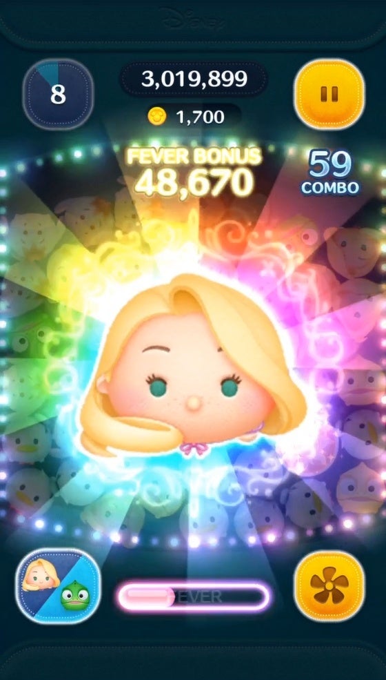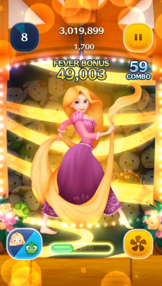 ラプンツェルのスキル:画面タップで縦ライン状にツムを消すよ!