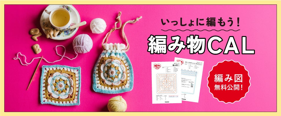 「編み物CAL(カル)」の「CAL」とは「Crochet Along」の略で「同じ編み図で、いっしょにかぎ針編みをしましょう」という意味。つまり、「参加者みんながいっしょの編み図を編む」大人気の企画です。