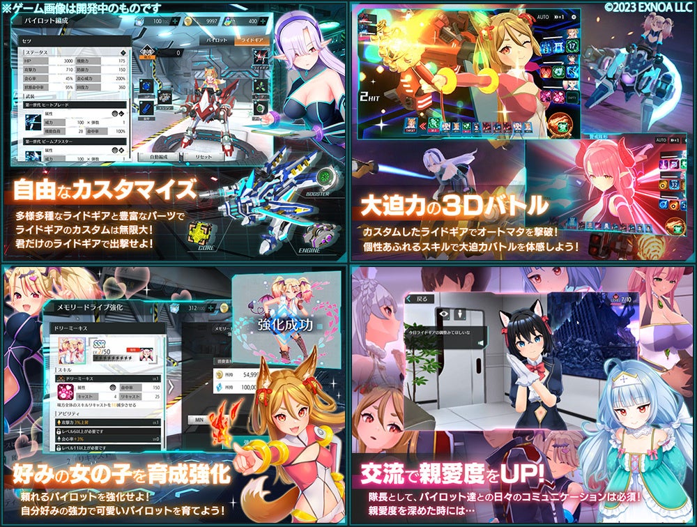 全方位 死角無し!3Dアニメ調でリアルに動く、かわいくてちょっとエッチな女の子達がライドギアに乗り強大なオートマタに立ち向かう、メカ×美少女RPGです。