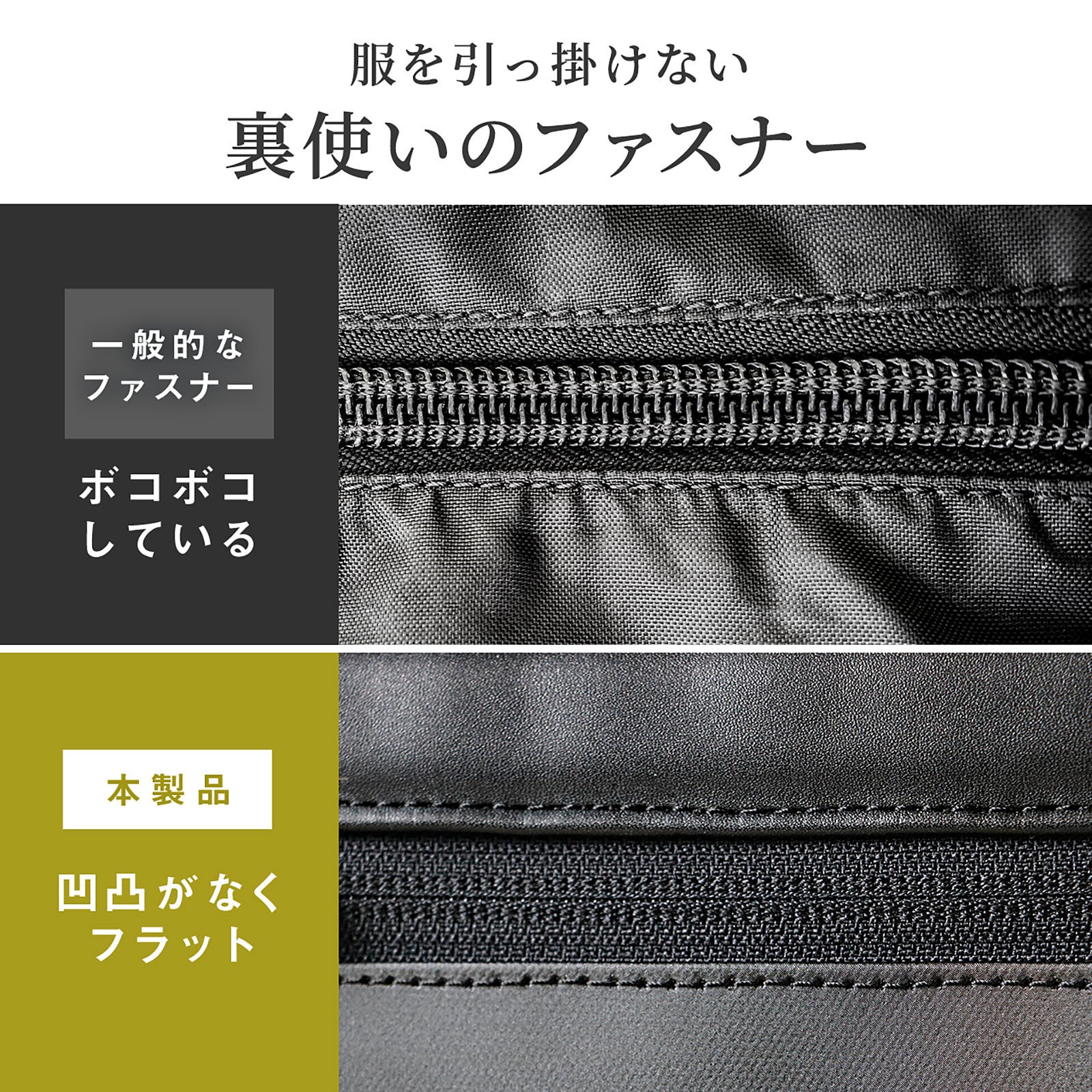 ファスナーを裏使い仕様にしているため、服を引っ掛ける心配がありません。